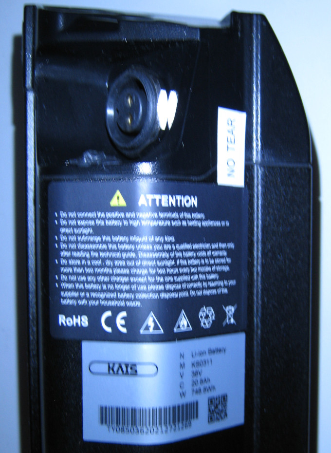 Das Ding ist groß, wuchtig und schwer. Damit kann ich rund 60-80 km fahren, vielleicht ein bißchen mehr. Für den Aktionsradius 100km brauche ich einen Ersatzakku. Meine Idee ist, den Akku auszuklinken und einen Ersatzakku per Kabel anzuschließen. Denn DIESEN Originalakku werde ich vemutlich kein zweites Mal bekommen.