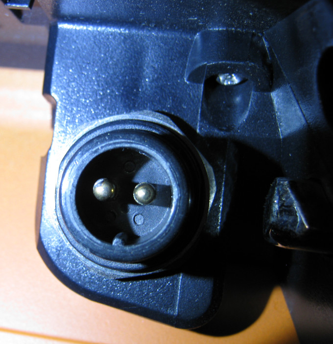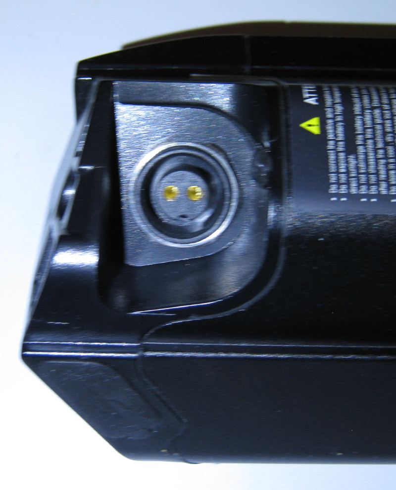 Weil der Akku schwarz ist und meine Kameras regelmäßig an Schwarz scheitern, habe ich erst einmal die Stecker und die beiden Enden des Akkus, bzw. der Einschnappstelle fotografiert.