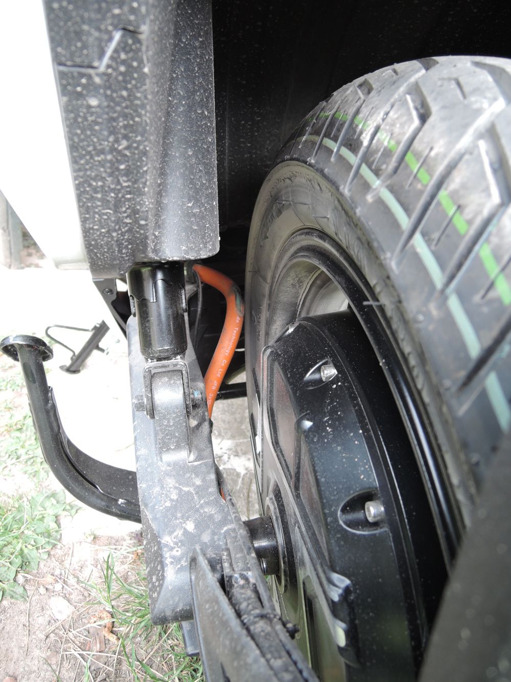 Ich rate jedem Besitzer eines der neuen Roller, egal, ob es der NQiX 150 oder der 300 oder der 500 ist, einen Kontrollblick von hinten in die Lücke links vom Hinterrad vorzunehmen und zu überprüfen, ob der Kabelbinder fest angezogen und der Abstand des Kabels zum Reifen ausreichend groß ist.