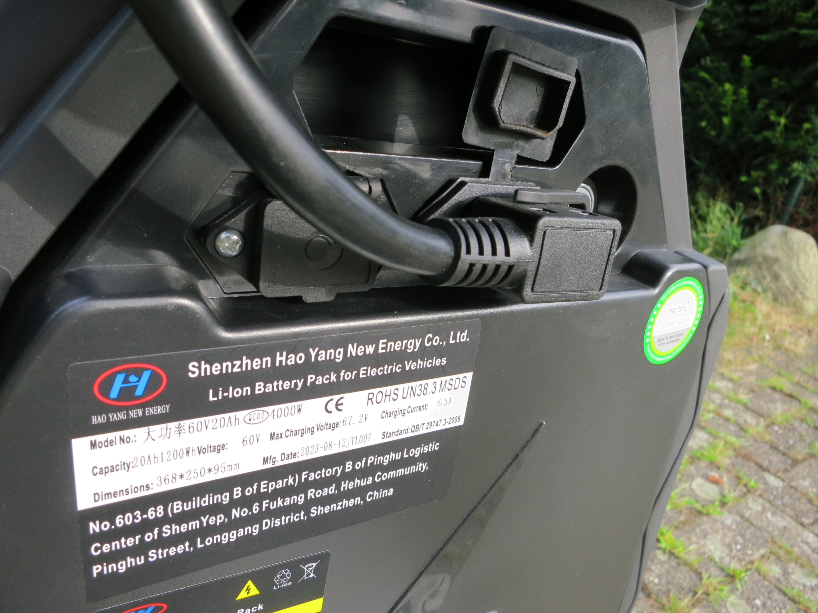 Die Stecker am Akku unter dem Trittbrett sehen genauso aus.