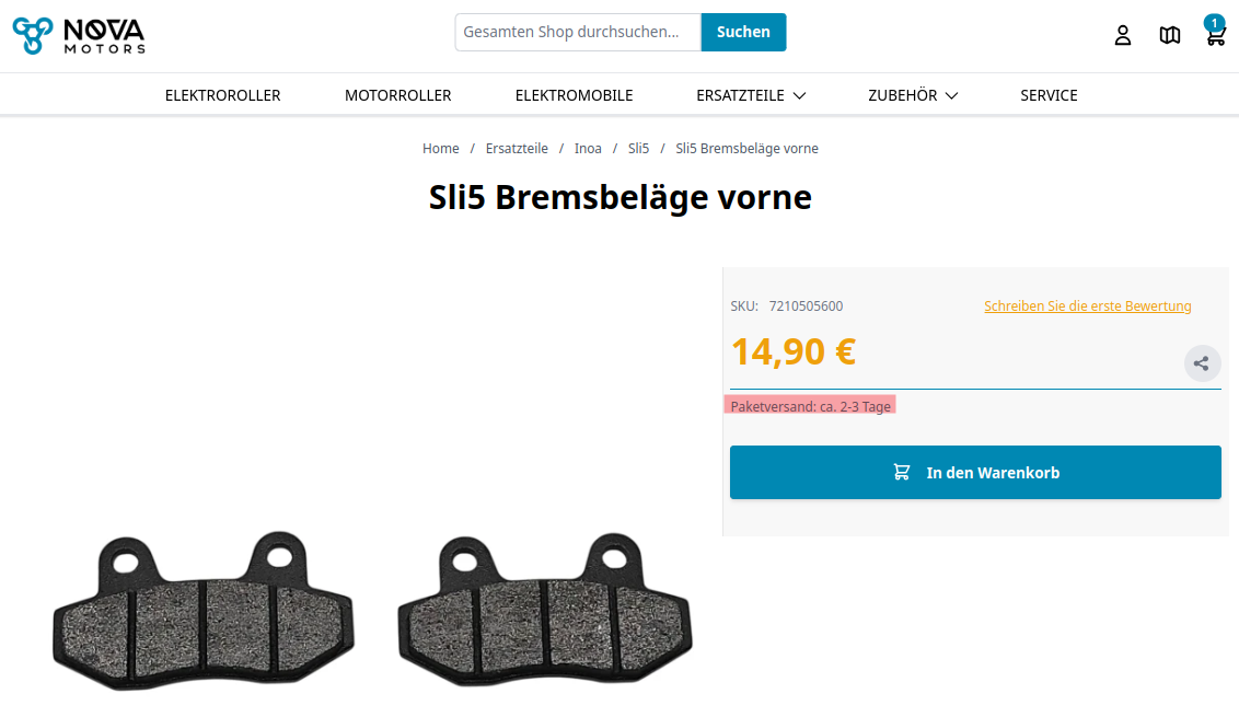 Über Monate waren die Bremsbeläge bei Nova nicht lieferbar, weshalb ich wohl zu lange mit abgenutzten Belägen gefahren bin – die Scheiben sind jetzt auch hinüber. Leider sind auch diese aktuell nicht verfügbar. Durch einen Tipp bin ich mal an andere Bremsbeläge gekommen.