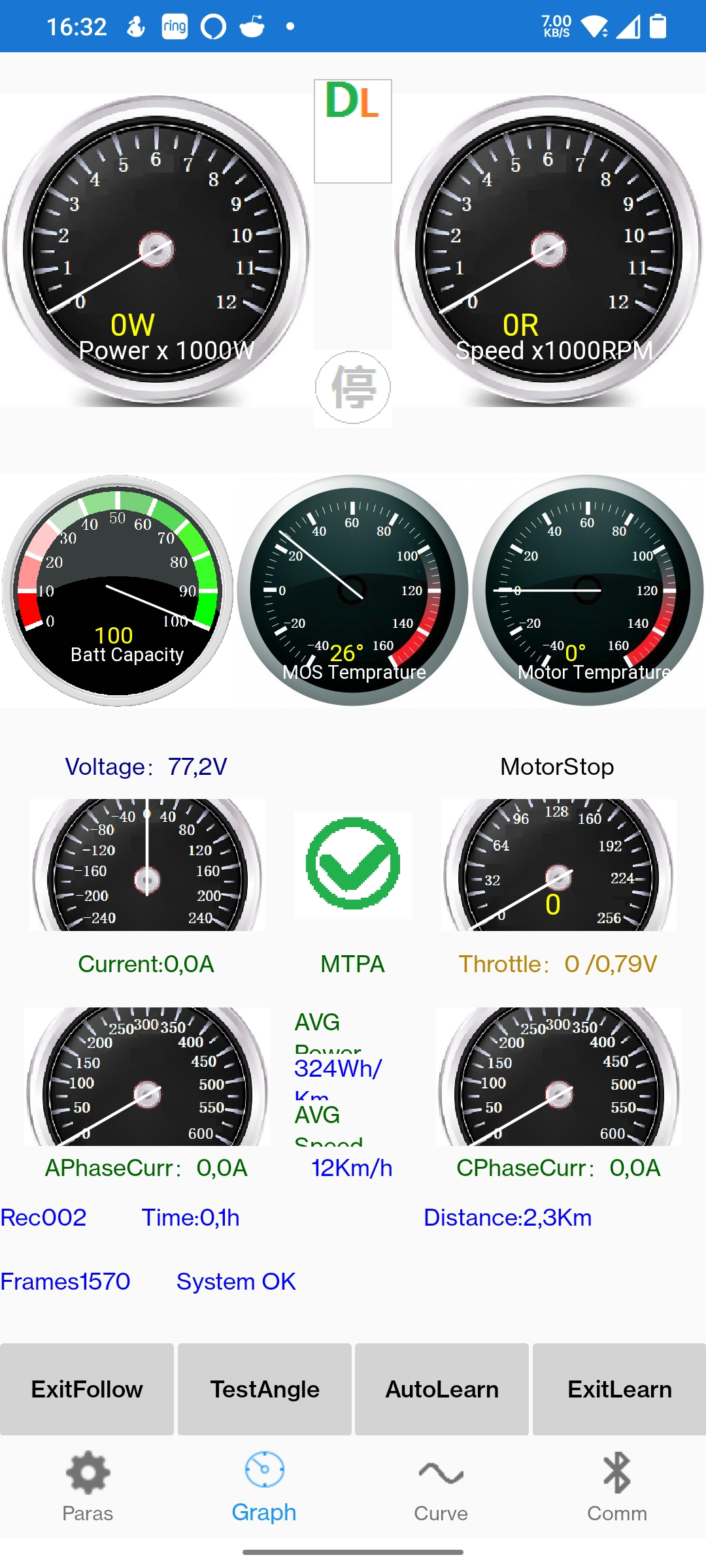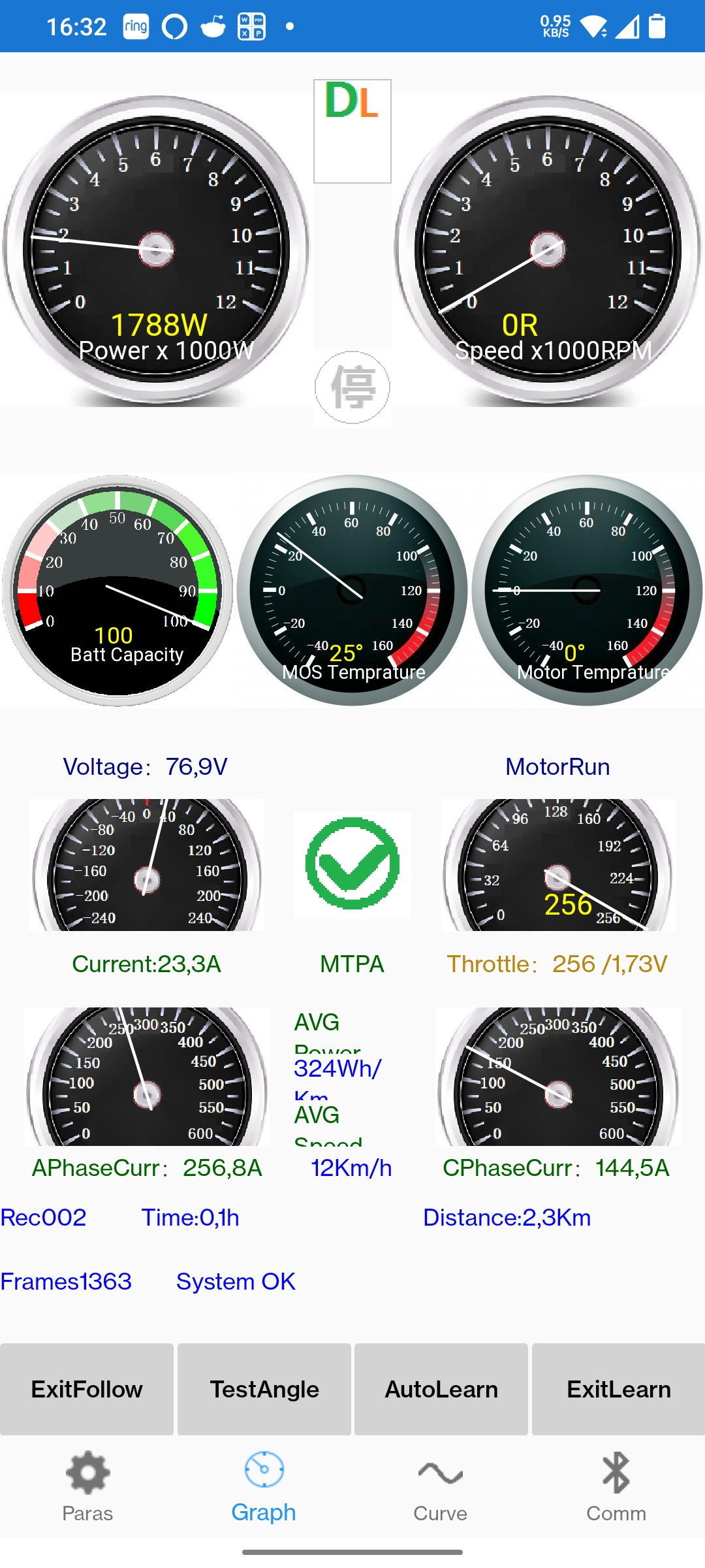 Anbei auch nochmal screenshots von der Fardriver App. Der Motor meldet offenbar erstmal keinen Fehler. Einmal screenshot bei 1. Gang Vollgas, einmal bei kein Gas.