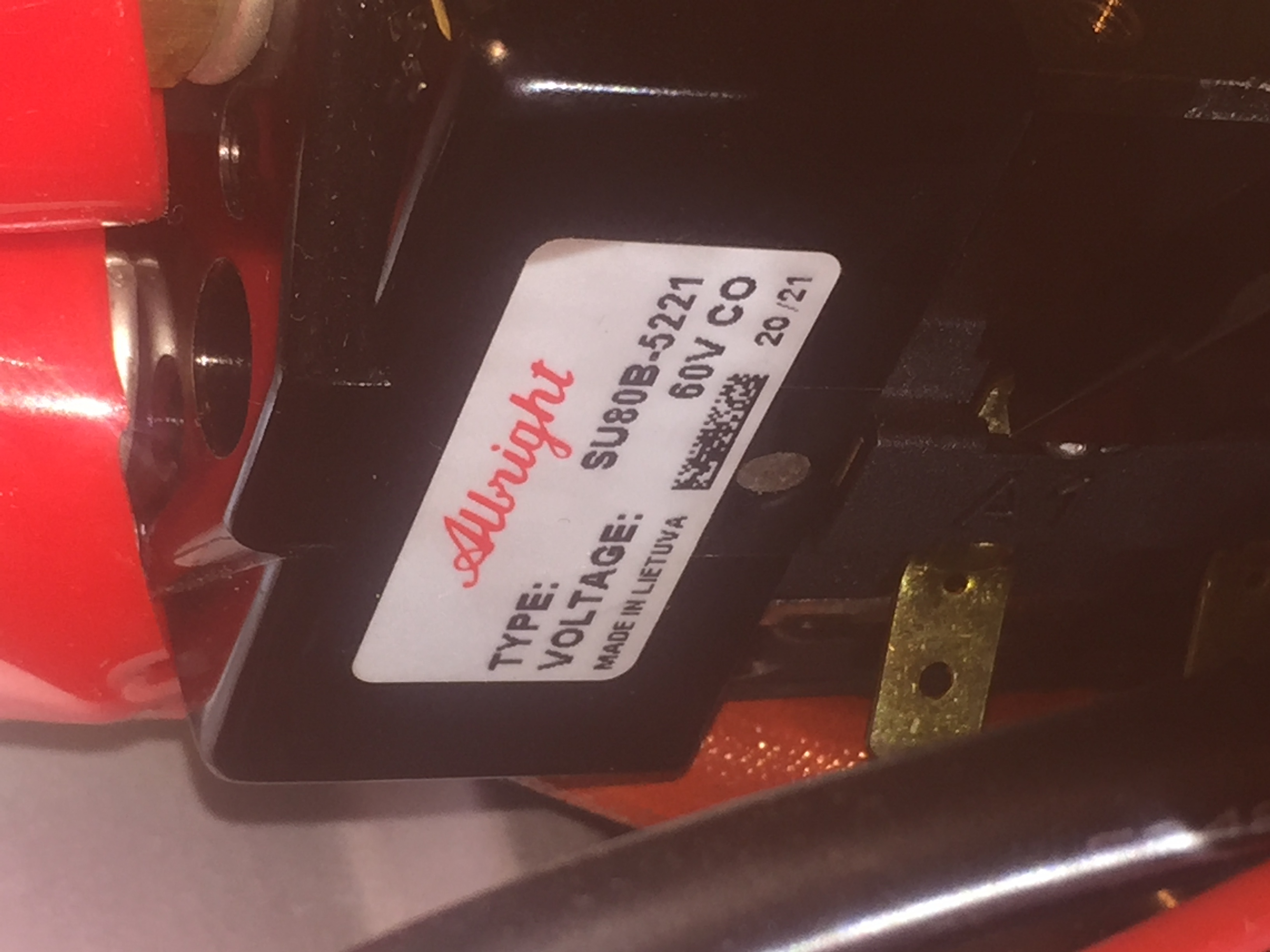 Das Typenschild auf dem Schütz sagt 60V. Bei den Albrights ist das die Steuerspannung. (CO für dauerhafte Ansteuerung) wie @Pfriemler schrieb.