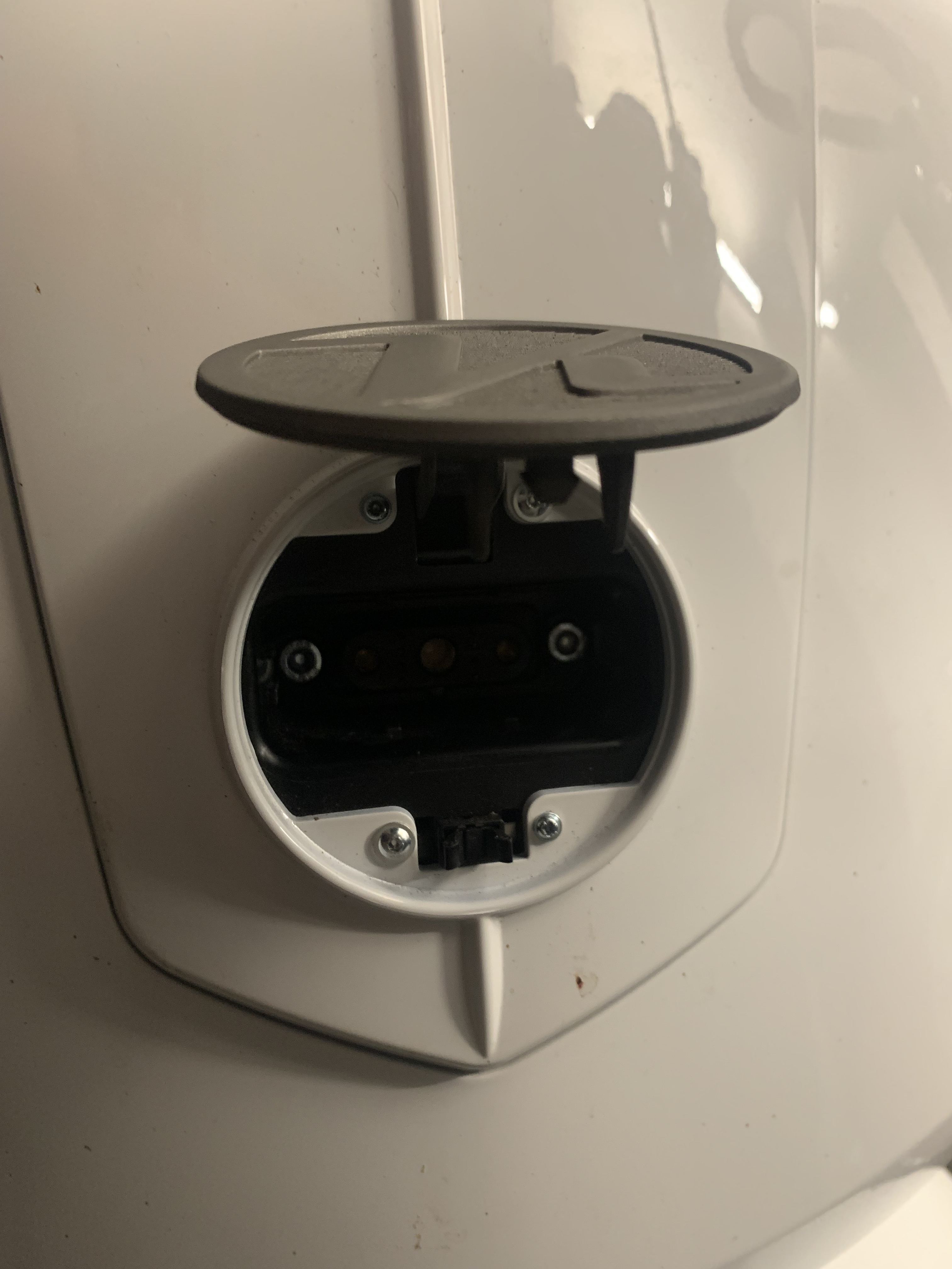 Die Akkus sind gelandet, das Laden über die Frontklappe funktioniert. Im Display wird dann das Ladesymbol angezeigt.