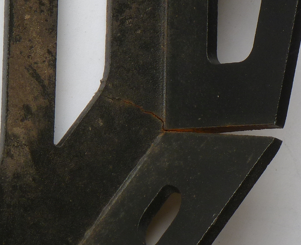 Dann, zu Hause, konnte ich es identifizieren, bei meinem Isotta-Top-Case-Träger. auf der rechten seite, gibt ess eine Riss, der durch die eine Biegestelle geht und dann auch schon angefangen hat, den weiteren Teil zu betreffen.