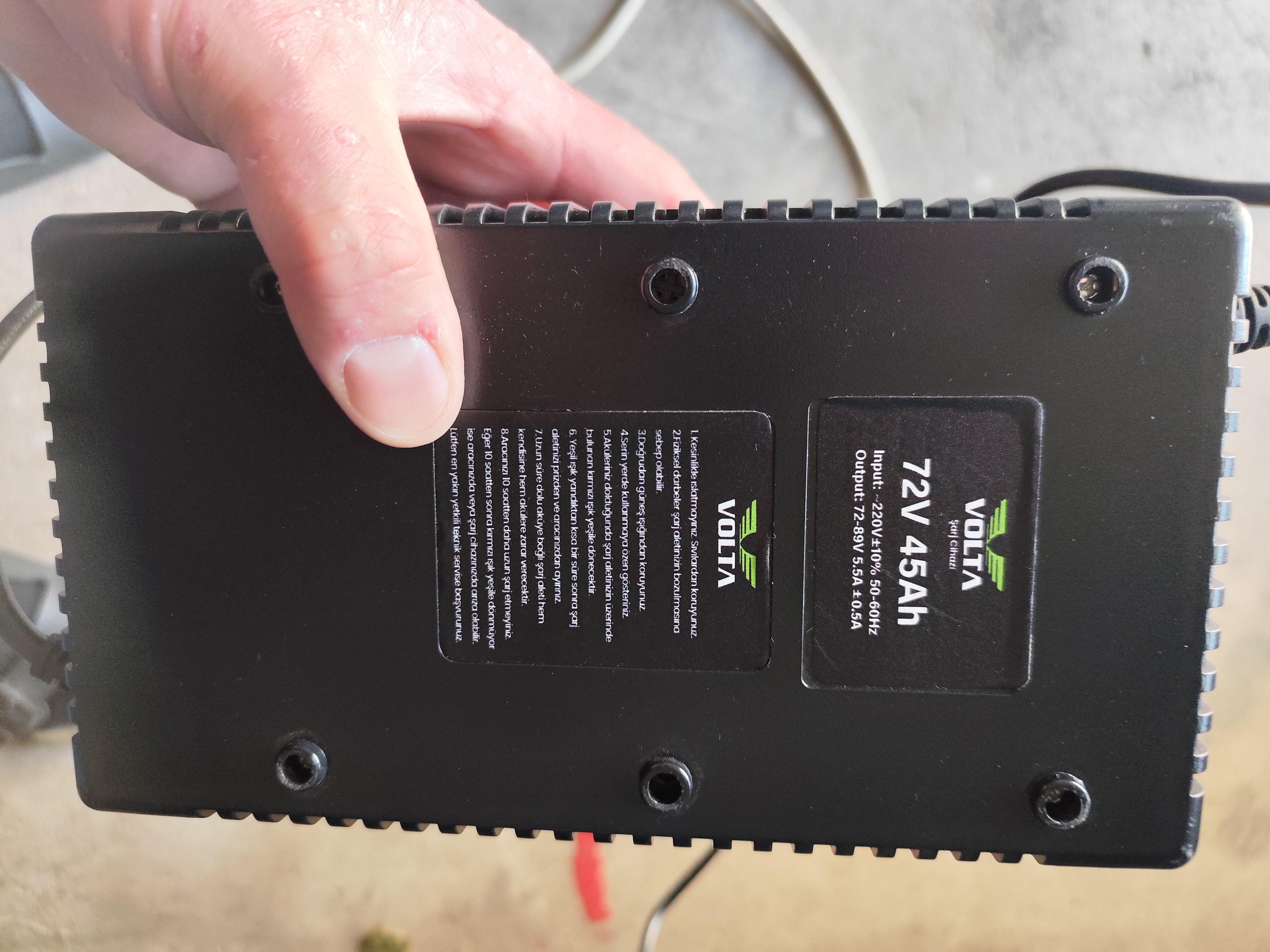 Die Ausgangsspannung des Ladegerätes sollte im genannten Bereich 72-89 Volt liegen. Vorsicht: Kurzschlüsse knallen da schon sehr ordentlich und anfassen kann auch schon gut wehtun.