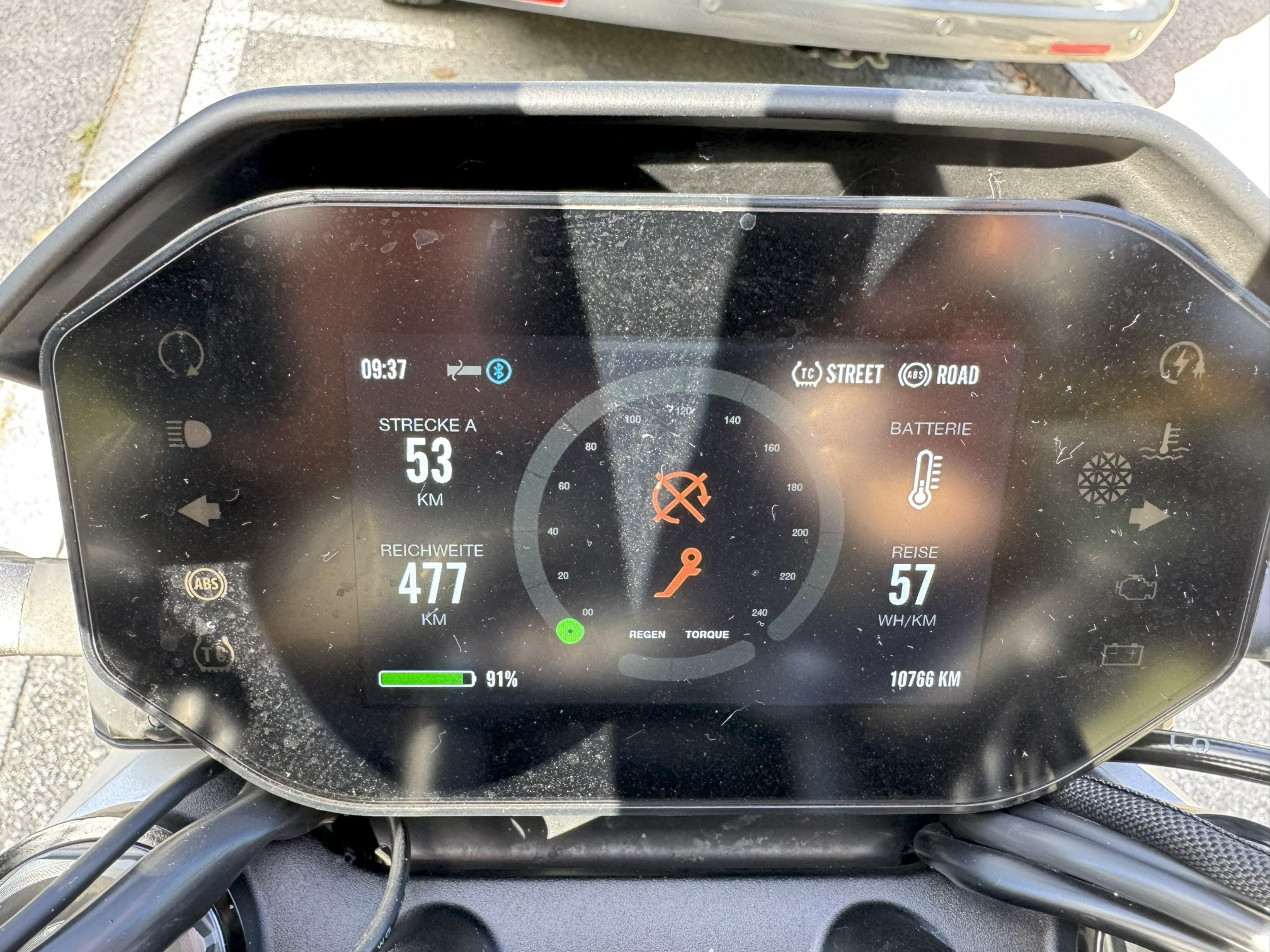 Ich bin bei Weitem kein Bummelfahrer – auch wenn es genug gibt, die noch tiefer in die Schräglage gehen als ich. Meine flensburggeschädigte Motorradfahrerseele meldet sich zuverlässig, sobald ich bei „Geschwindigkeitslimit + X“ unterwegs bin. Da macht’s keinen Unterschied, ob elektrisch oder mit Benzin.