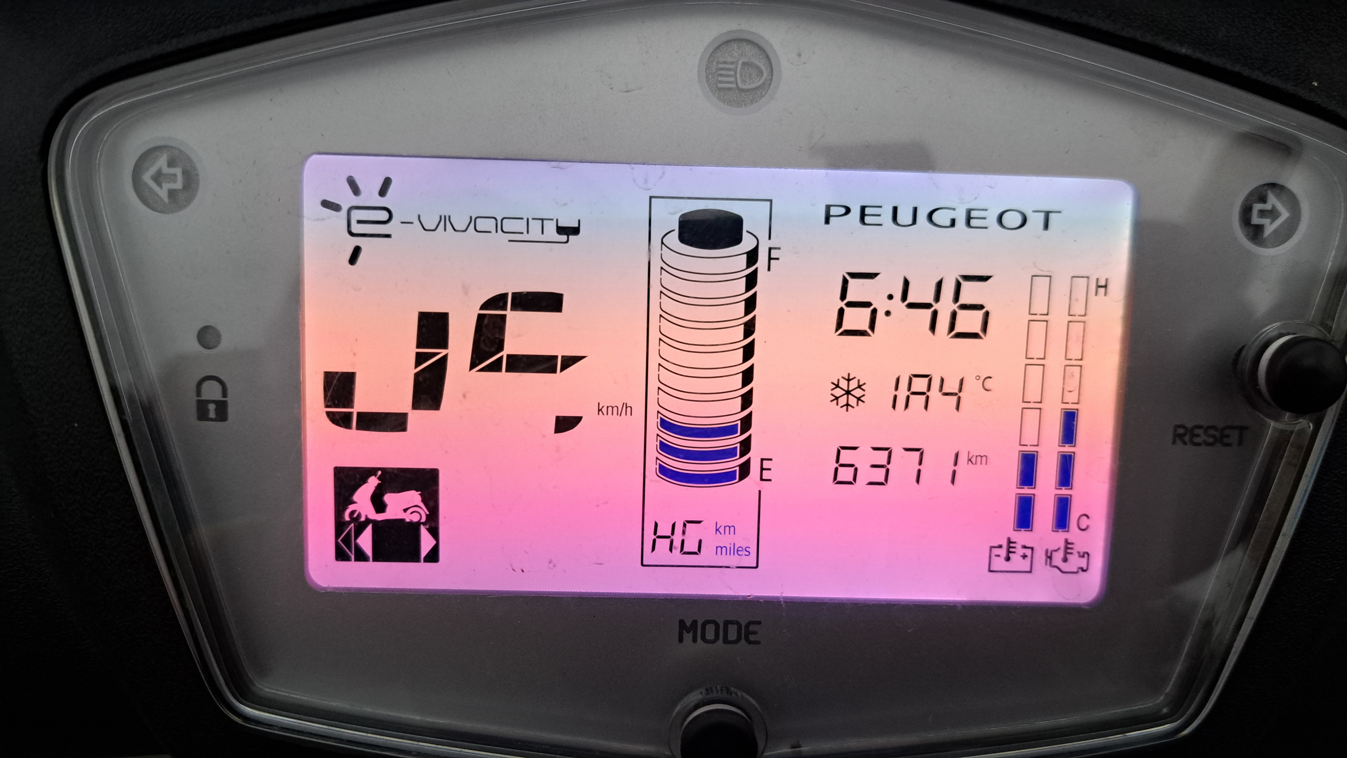 Gestern fuhren wir mit unserem Peugeot E-Vivacity von der Arbeit nach Hause. Während der Fahrt wechselte das Display plötzlich in den Schwarz-Weiß-Modus und einige Zeichen wurden nicht oder falsch angezeigt. Das hat mich ziemlich erschreckt, beeinträchtigte aber glücklicherweise die Fahrtüchtigkeit nicht. Nach dem Anhalten, Aus- und Wiedereinschalten des Rollers war das Problem verschwunden. Kennt jemand die Ursache für dieses erstmals aufgetretene Problem? Ist das Display oder dessen Elektronik beschädigt? Feuchtigkeit im Displayanschluss? Externe elektronische Störungen?
