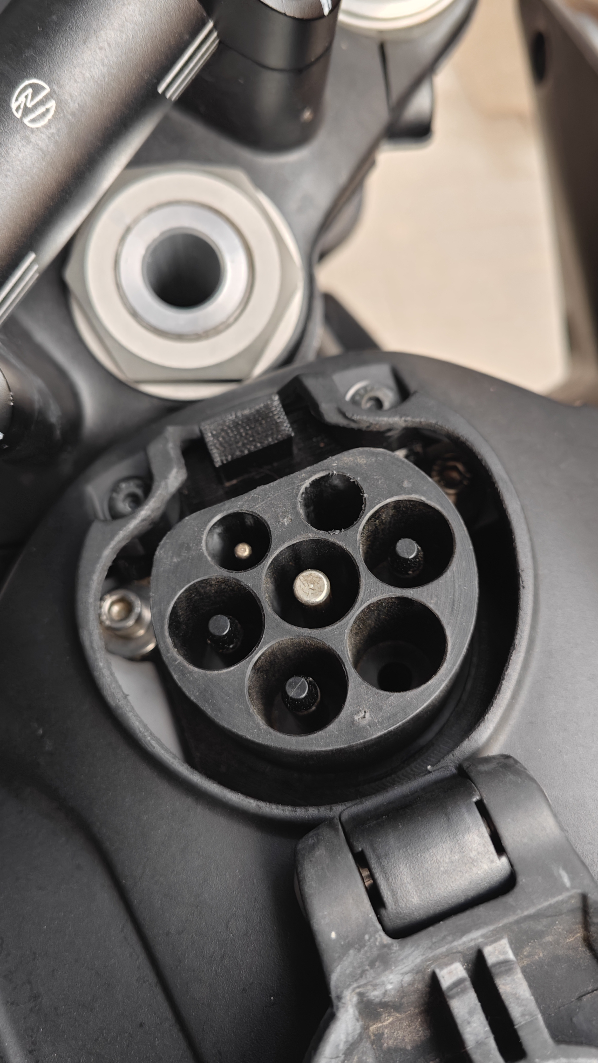 Das gehört so, ist der Proximity pin. Beim Ausstecken, solange noch Strom fließt, wird dieser durch seine Kürze früher getrennt als die anderen Kontakte, so dass beim Kontaktverlust des kurzen Proximity Pins die Ladesäule sofort das Laden unterbricht.masti hat geschrieben: Sa 27. Sep 2025, 19:12Hab mir die Buchse genauer angesehen und bemerkt, daß einer der Kontaktstifte viel tiefer sitzt als die anderen - und zwar um mehr als 11 mm tiefer. Wenn man bissl schräg in die Buchse schaut, sieht man den gar nicht. Es ist der kleine rechts oben.