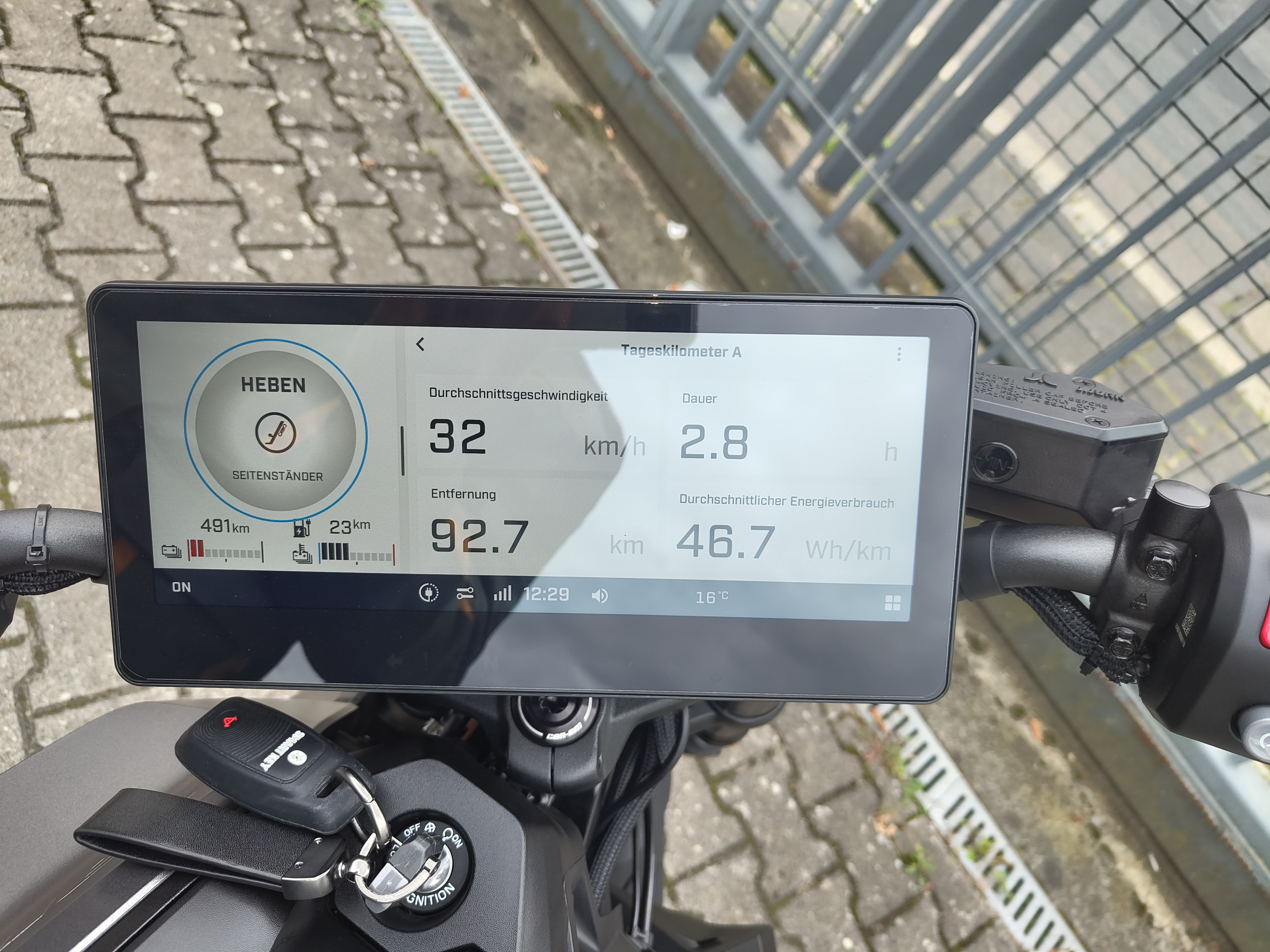 Was mich wirklich begeistert, ist die vom Motorrad angegebene Ladedauer, die auf die Minute genau gestimmt hat.