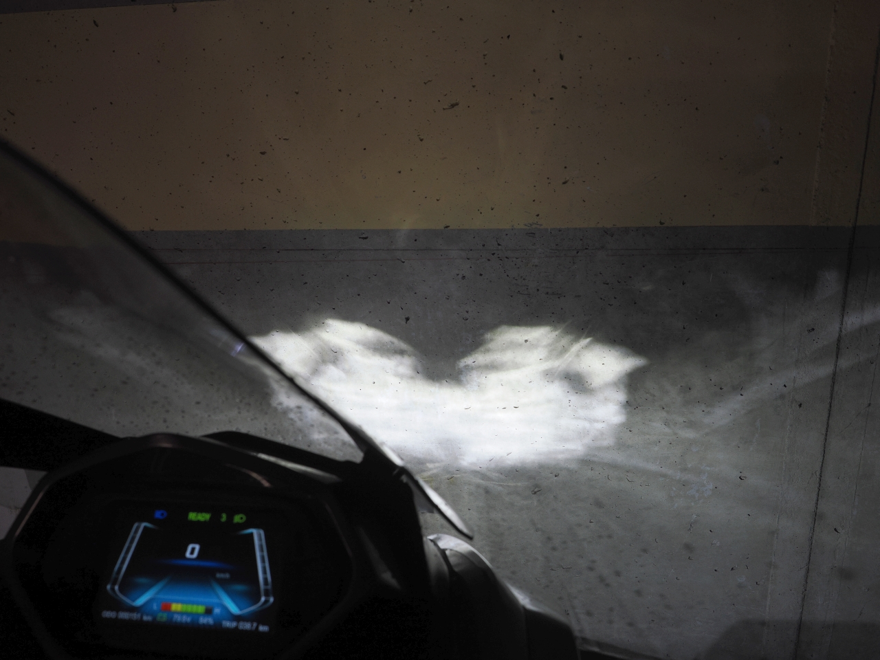 Du könntest ja mal den Test wie auf dem Bild machen und schauen wie er ausfällt. Beim Horwin EK3 war der Scheinwerfer zu tief eingestellt und musste nur nachgestellt werden.