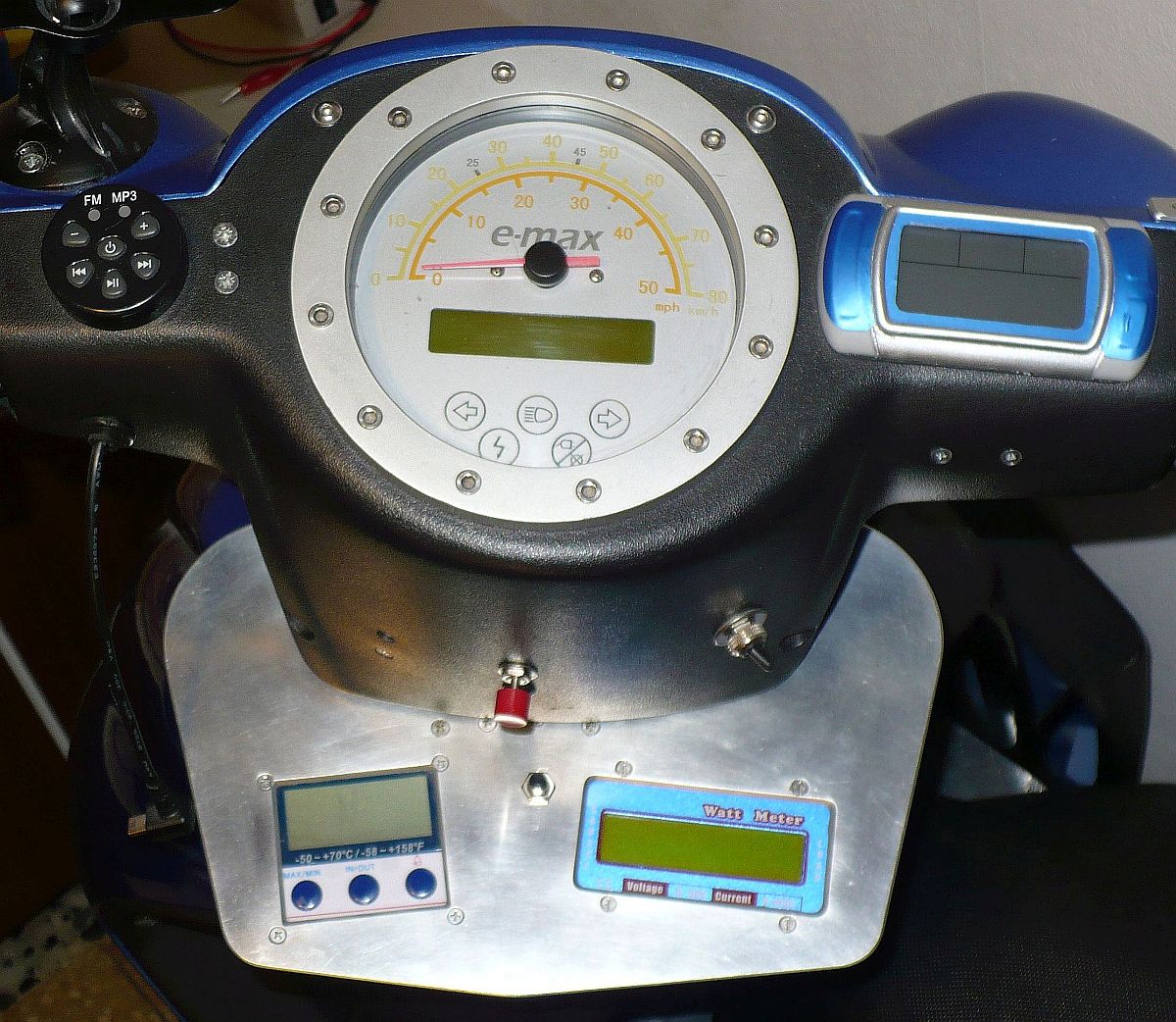 Also, auf den 6A-Schalter versteife ich mich absolut nicht (den hatte ich halt schon und dachte, dann kann ich ihn ja vielleicht auch - ressourcenschonend ;) - verwenden). Sehr viel blöder ist, dass ich, wie Du an dem angehängten Foto sehen kannst, mir sehr viel Mühe und Arbeit beim Einbau von Uhr, Thermometer und Watt Meter gemacht habe (und nicht nur da...). Das jetzt alles noch mal ändern zu müssen, ist/wäre reichlich frustrierend (und die fast €150 für das BMV-700 sind im Augenblick auch etwas viel...). Das Watt Meter wurde mir, wenn ich mich recht erinnere, von dem Händler empfohlen, von dem ich den e-max habe.