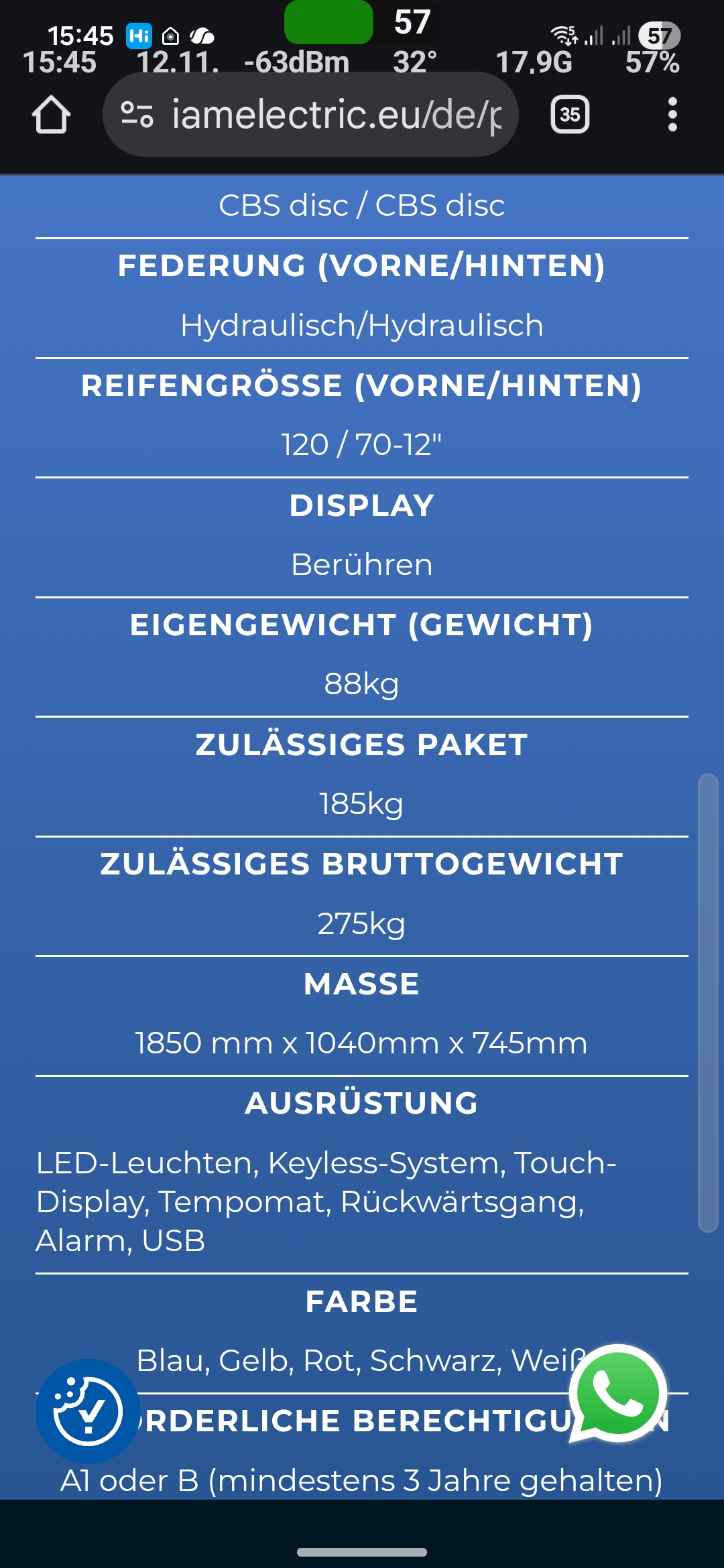 - ohne Akkus max 74kg wiegt