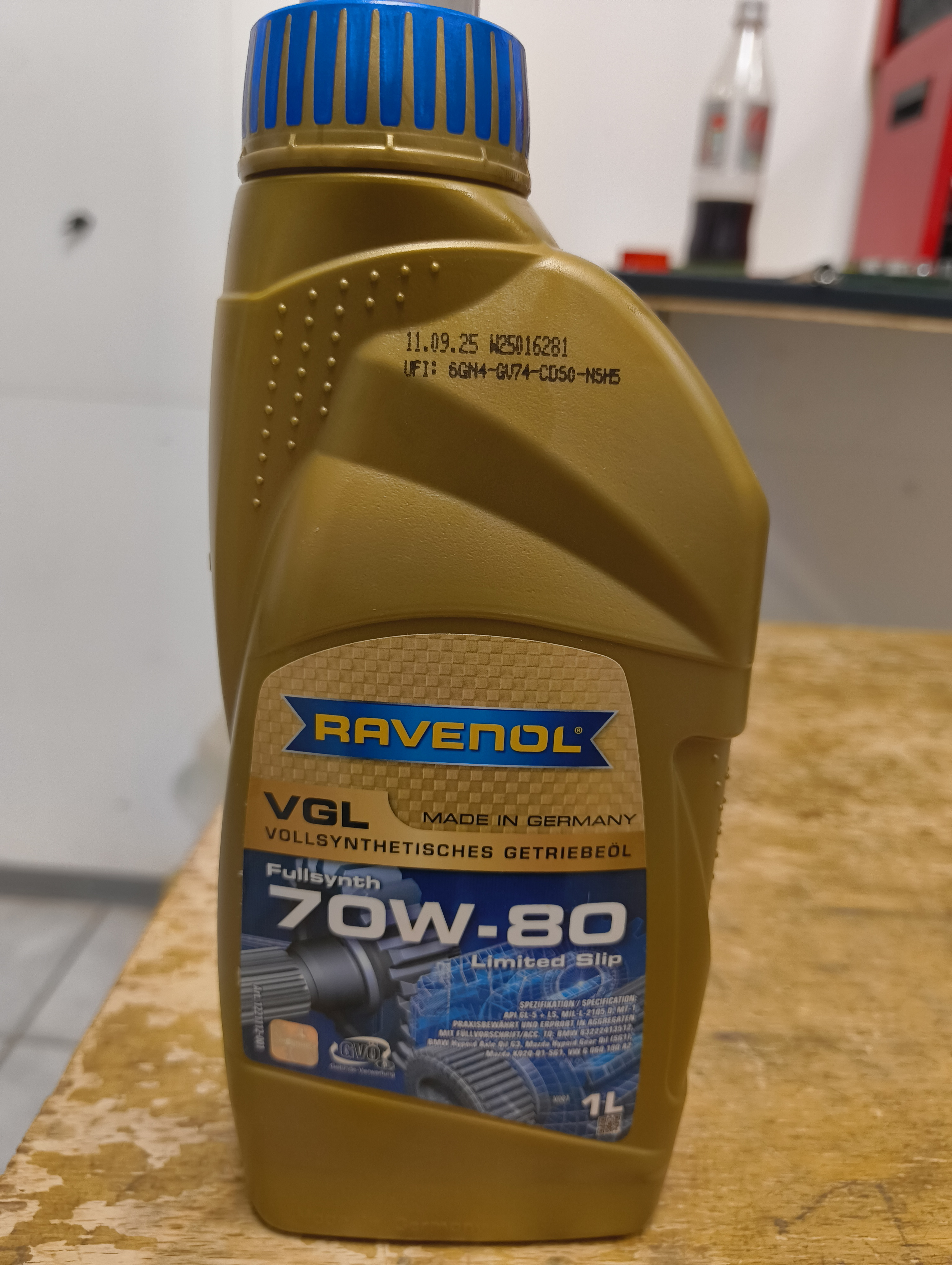 Wie dem auch sei da ich ja nicht nur bei der Inspektion das Datum einstellen will hab ich mir mal das Hypoid Getriebeöl besorgt bzw. Alternativ von Ravenol mit BMW Freigabe. Es gibt einen Liter für ca 20€ das kann man mal investieren.