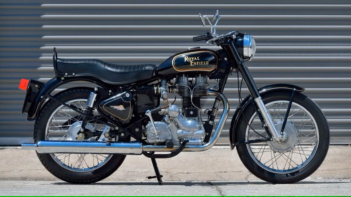 Die klassische Bullet aus Indien. Wobei die Linkschaltung erst später Anfang der 2000er Jahren kam. Bis dahin hatte sie die englische Rechtsschaltung.