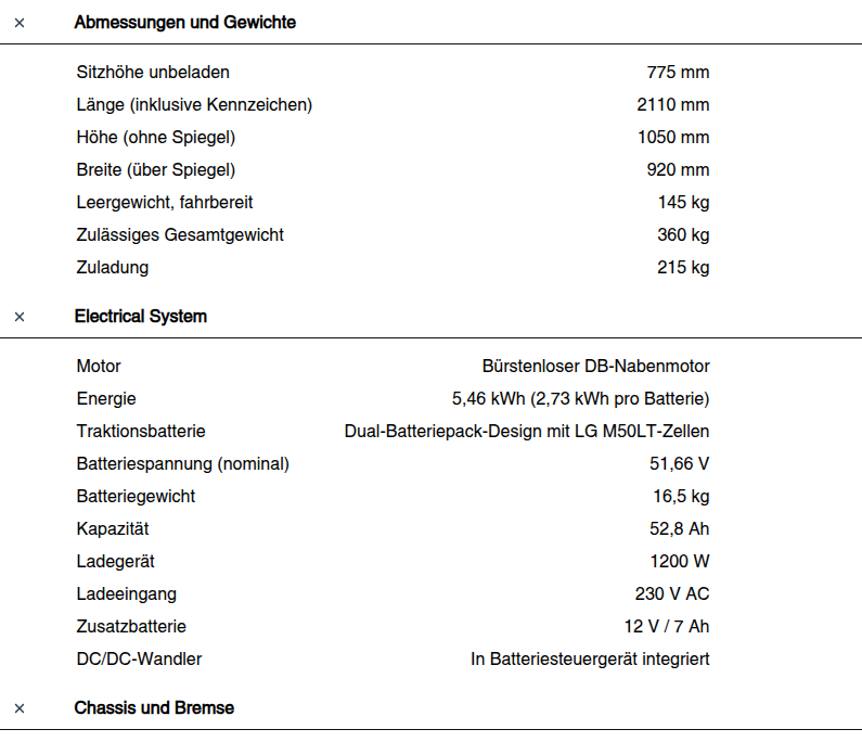 - Roller: Inoa S5 Li Doppelakku ab 02/22 + NIU N-GT Ext.Range ab 08/24