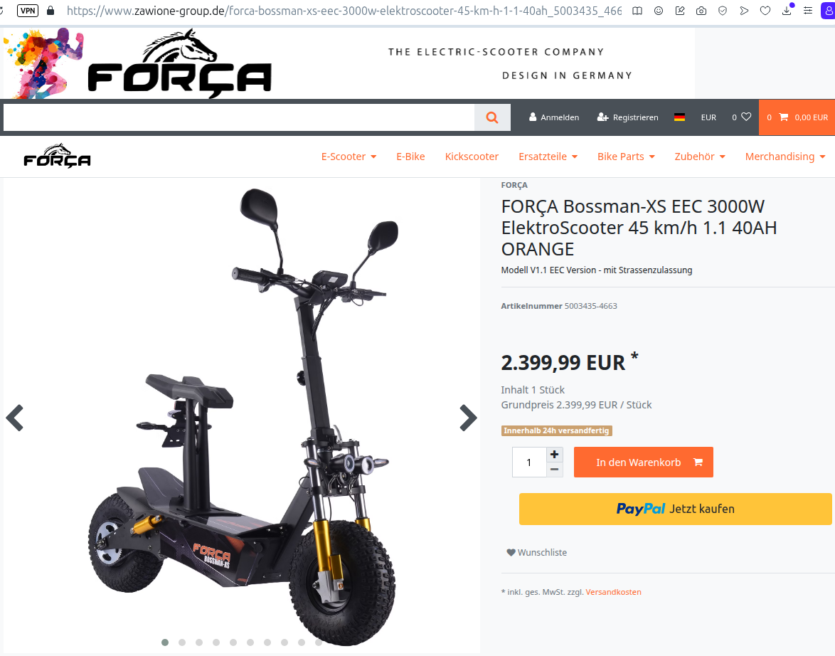 Ich habe dieses Thema begonnen, weil ich den Hersteller von E-Scooter Força Bossman melden möchte. Ich bin wirklich wütend auf sie.