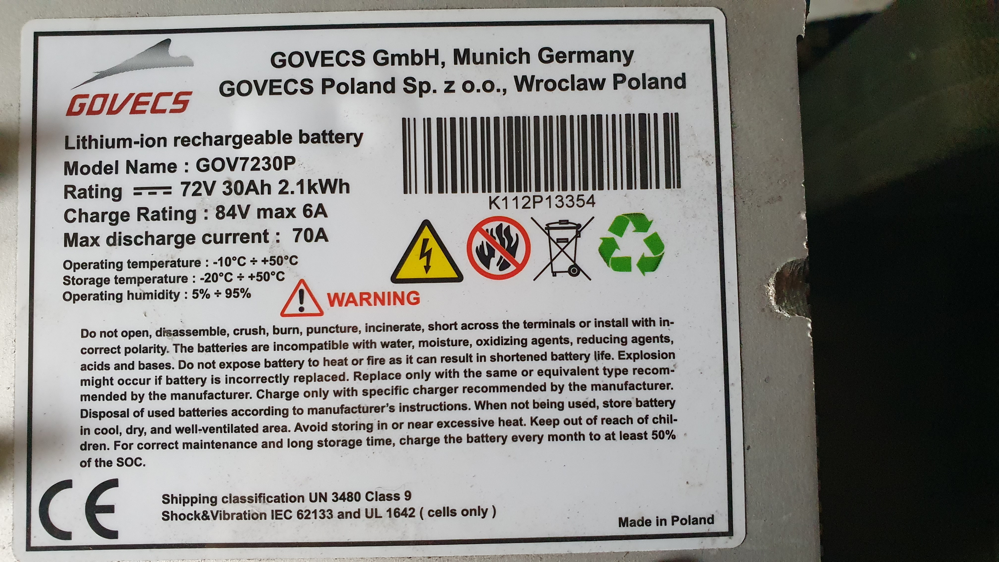 In dem Roller sind 2 Akkus verbaut. Ein Akku (vermutlich der Antriebsakku) hat 72V und 30Ah. Der zweite Akku mit 50,4V und 42,75Ah