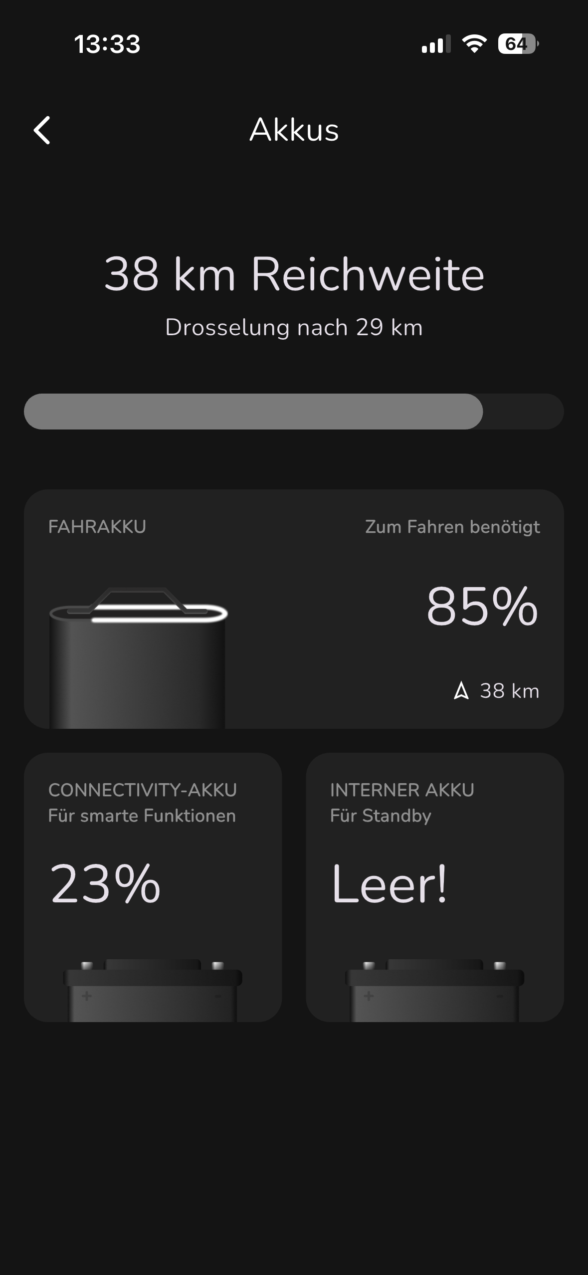 Hi zusammen, seid ich meinen Roller aus dem Winterschlaf aufwecken wollte, geht der unu nicht mehr normal an. Der unu Bildschirm startet immer nur kurz an (Logo wird angezeigt, danach geht das Display aus). Ich hab die hilfsbatterie ausgetauscht (12V (Aux) Batterie × 1) und neu geladen. In der App steht Interner AKKU für Standby leer. Was kann ich hier noch machen? Danke für eure expetise vorab
