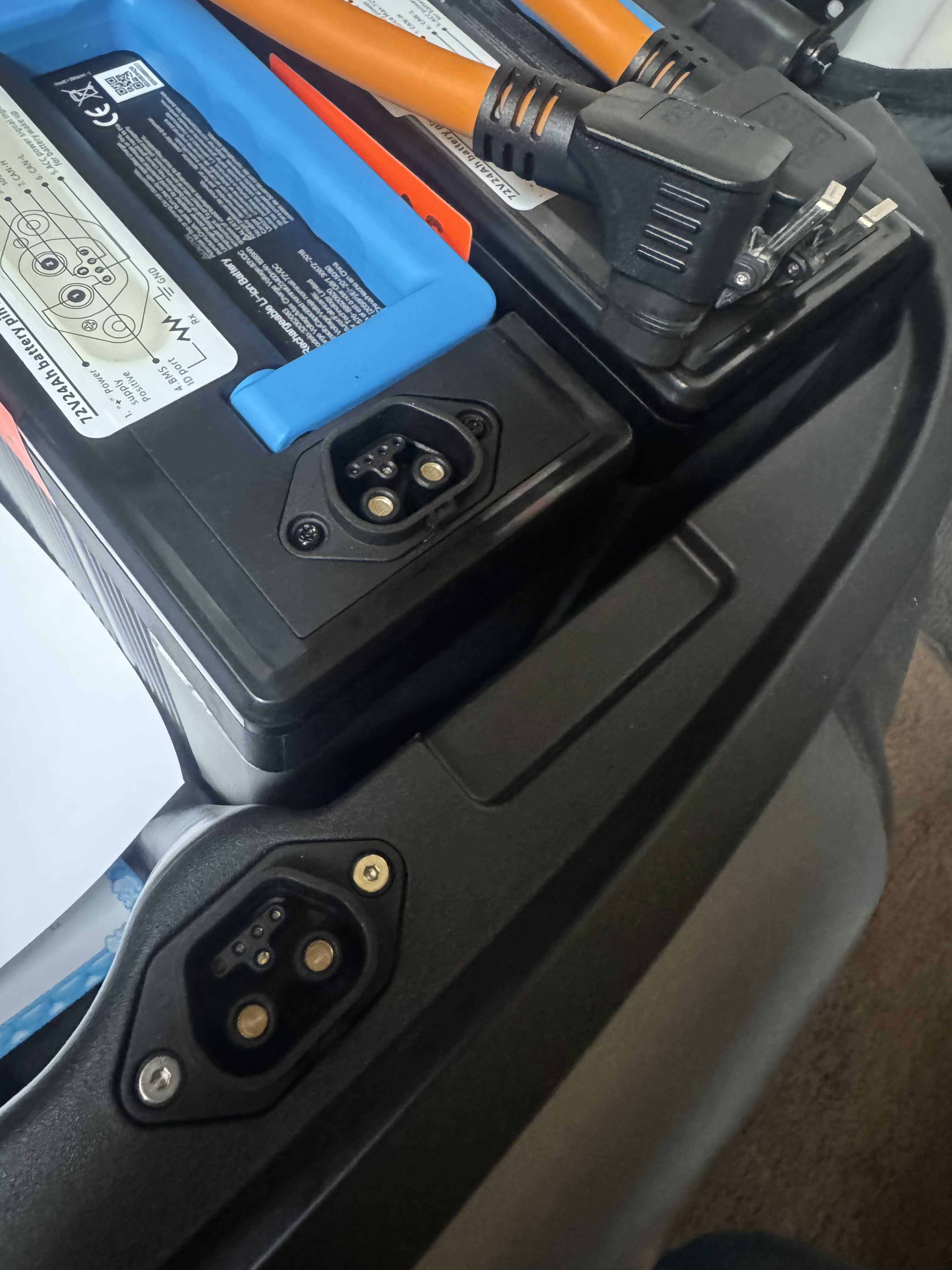 Hier liegt nämlich mein Problem: In die Ladebuchse am Roller gehen neben Plus und Minus noch zwei weitere Pins. Ich vermute stark, dass hier das BMS (Batteriemanagementsystem) mit angesteuert wird oder eine Art Freigabesignal erwartet.
