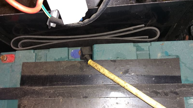 Heute sind nun mal die Batterien rausgekommen, die vordere ganz unten hatte eine gute Presspassung in Längsrichtung :shock: , da hat wohl einer vergessen das Blech vor dem Einbau passend zu machen. An allen Verschraubungen ist ROST und keine Scheiben oder Ringe montiert.