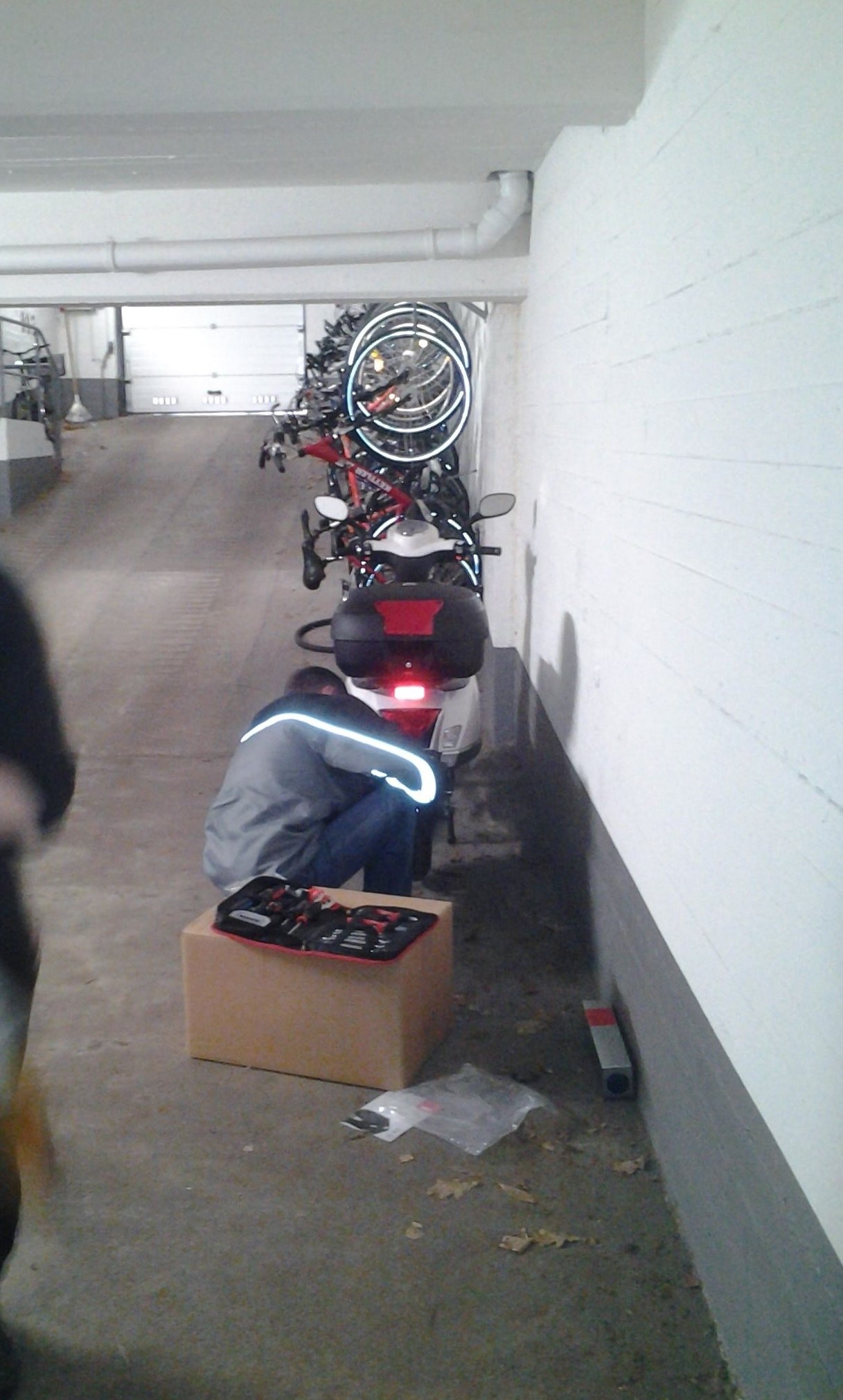 ... wobei sogar eine kleine Akku-Handbohrmaschine durch die Alu-platte kommt. Givi montieren war keinerlei Problem.