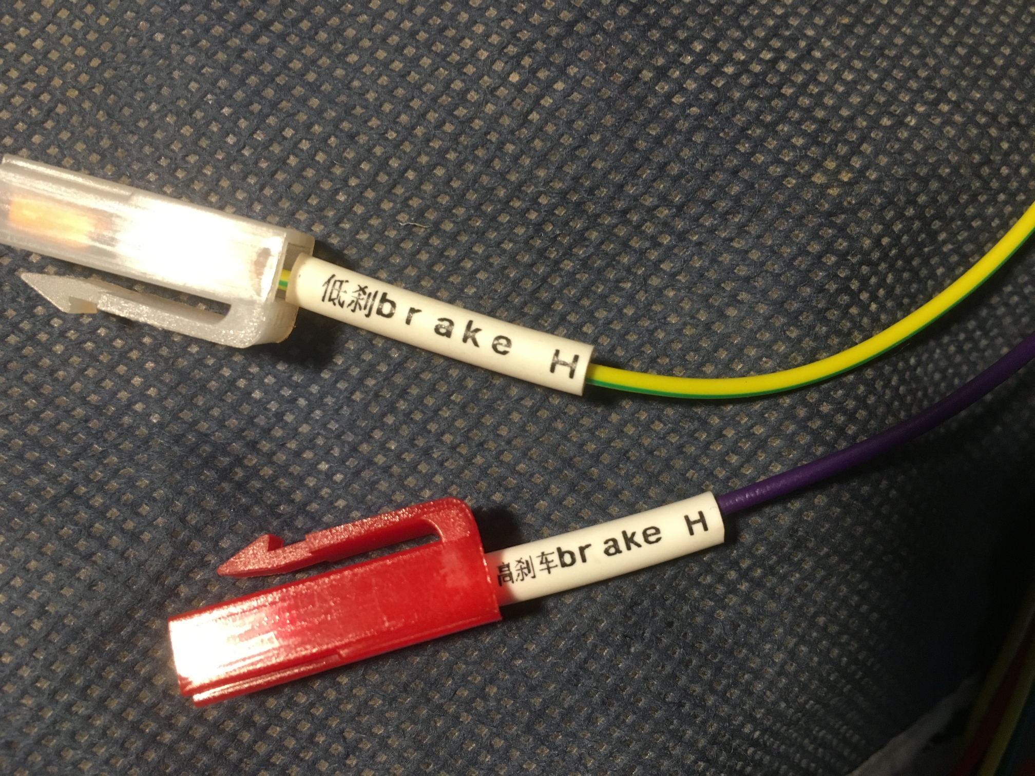 Unklar ist der angeblich vorhandene "Brake L" Eingang, denn ich habe zwei unterschiedlich-farbige Kabel mit 6,3mm Kabelschuhen in meinem Controller Kabelbaum, die BEIDE mit "Brake H" beschriftet sind: Hier warte ich noch auf Rückmeldung aus China, denn von dort wurde mir ein Bild vom selben grün-gelben Kabel geschickt, aber mit "Brake L" beschriftet