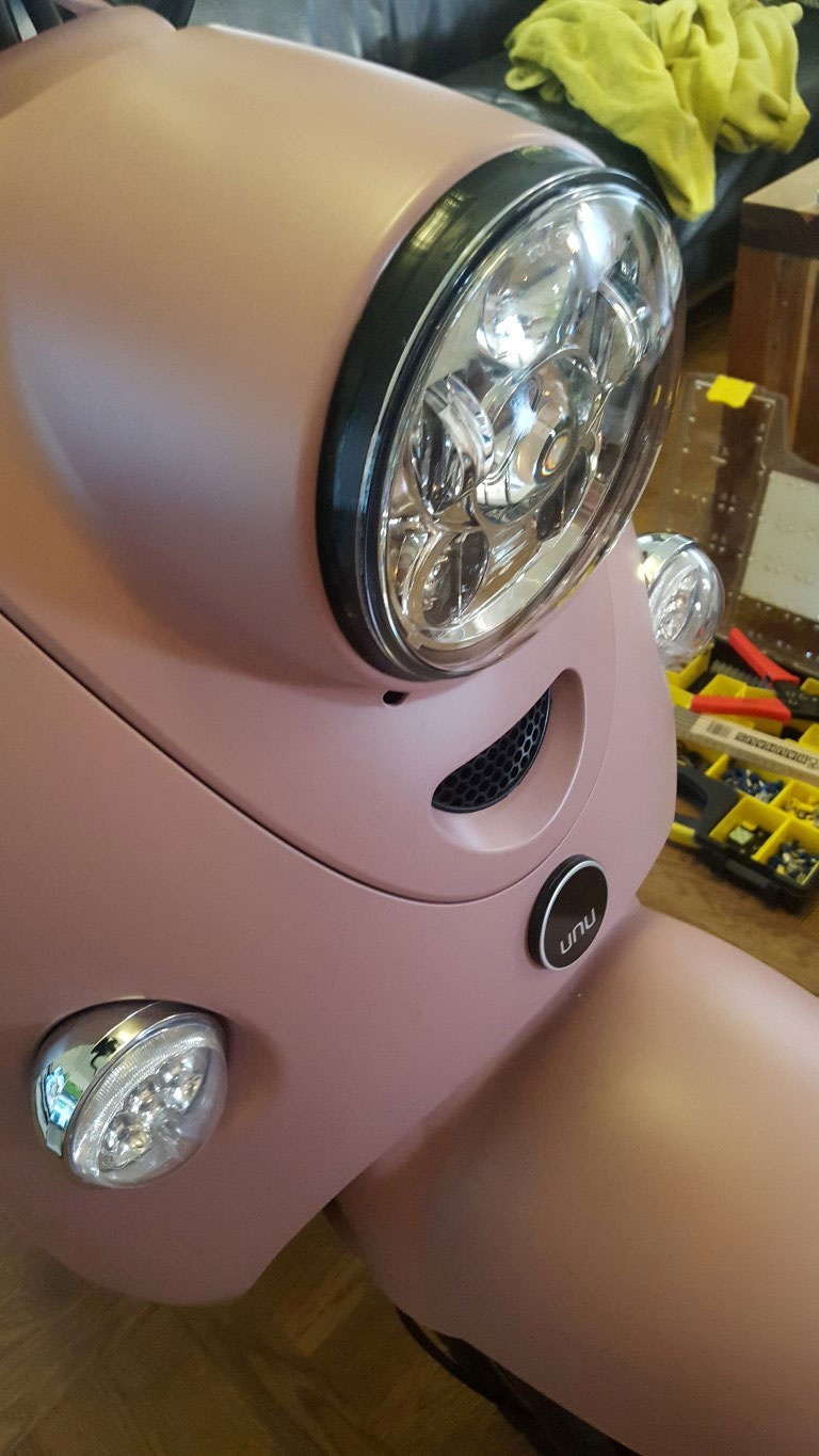 Sieht schon schick aus. Und wenn die E-Nummer auf deinem Scheinwerfer tatsächlich "echt" sein sollte, brauchst du dir auch um die rechtliche Seite nicht so viele Gedanken machen. Allenfalls der Umstand, dass der Scheinwerfer nicht mehr verstellbar ist (weil er gar nicht für den Unu gemacht ist) und dass es kein Standlicht mehr gibt, könnte u. U. problematisch werden. Skeptisch bin ich auch noch bei der Kurvenausleuchtung. Die Hell-/Dunkel-Grenze ist doch recht abrupt. Das in Verbindung mit dem Umstand, dass beim Unu der Scheinwerfer nicht am Lenker befestigt ist und somit bei Kurvenfahrten nicht mitschwenkt, könnte noch für die ein oder andere Überraschung sorgen