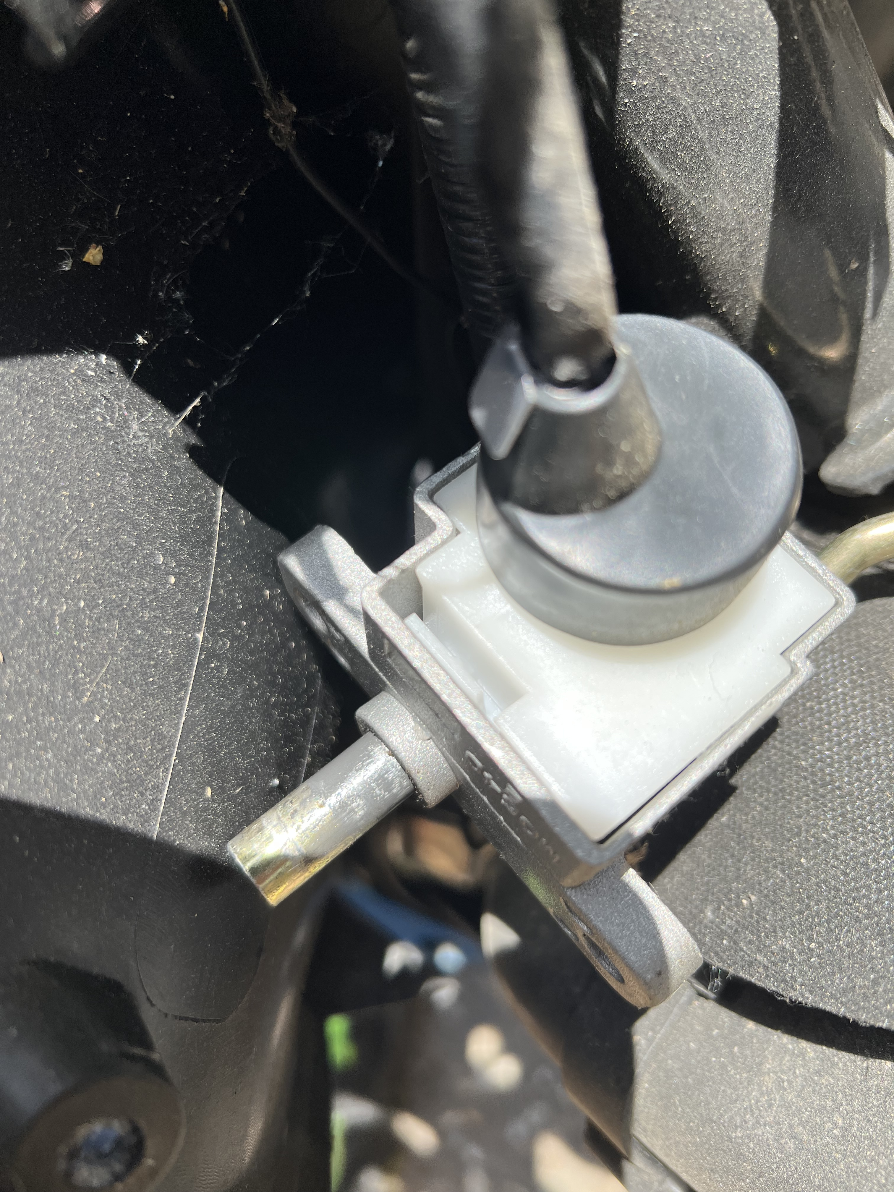 Wurde umgefahren beim ausparken. Derjenige wollte auch abhauen nachdem er den Roller wieder aufgehoben hatte. Normal sollte sich der Lenker ganz nach links eingeschlagen und verriegelt ja kaum noch bewegen lassen. Aktuell lässt sich das ganze aber knapp vor der Geradestellung wieder ausrichten. Also bedingtes fahren wäre möglich. Entweder Stift gebrochen oder das Halteblech werde wohl ums öffnen der Verkleidung nicht rum kommen.