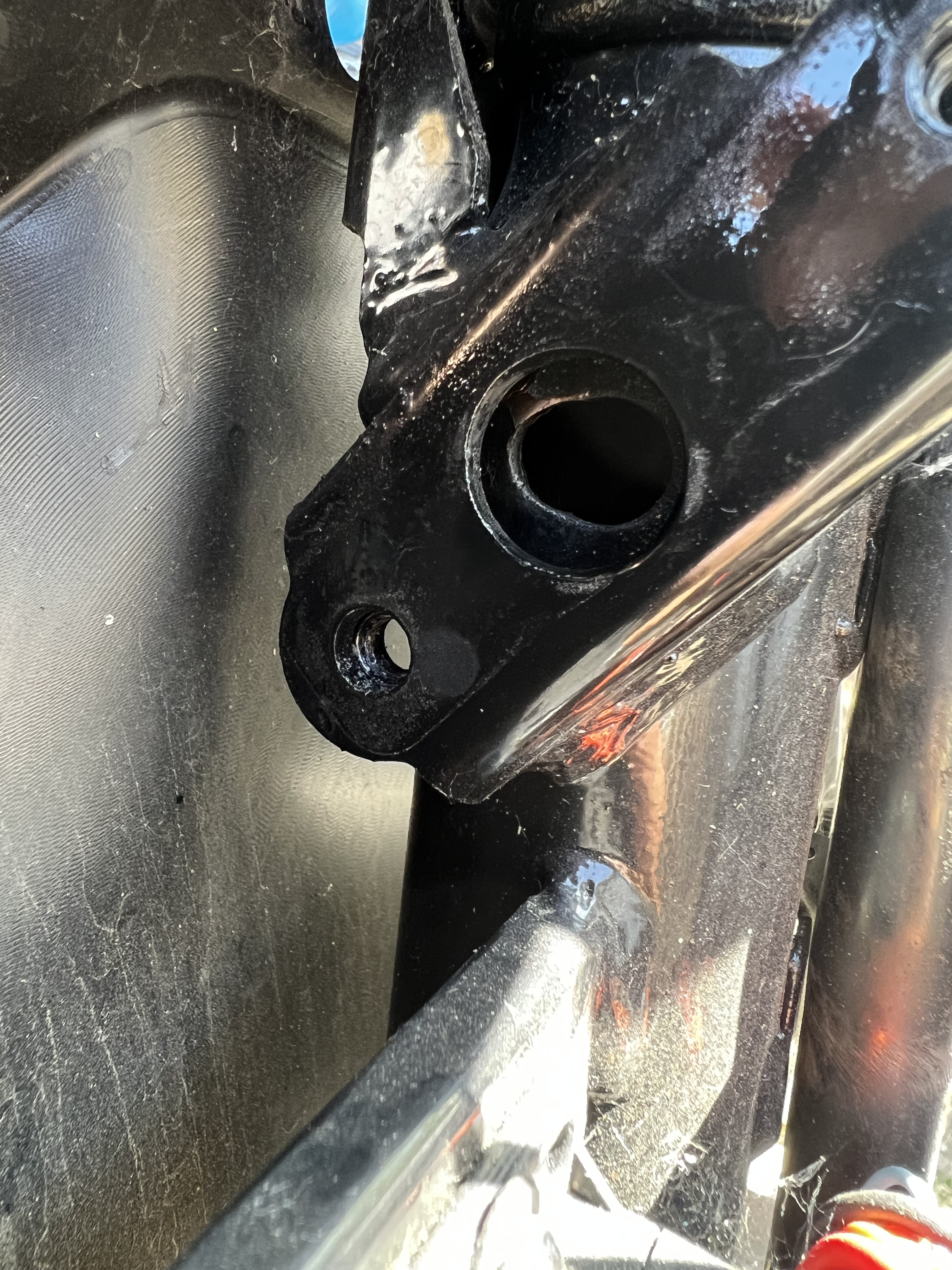 Wird wohl so sein, dass das Loch vergrößert oder gar gerissen ist bei dem Vollmaterial aber eher unwahrscheinlich. Ggf hat dich das ganze auch etwas verschoben sodass der Stift nicht mehr greift oder der Stift selbst ist verbogen was aufgrund des Vollmaterials aber auch unwahrscheinlich ist. Naja werde berichten dann haben wir Gewissheit.