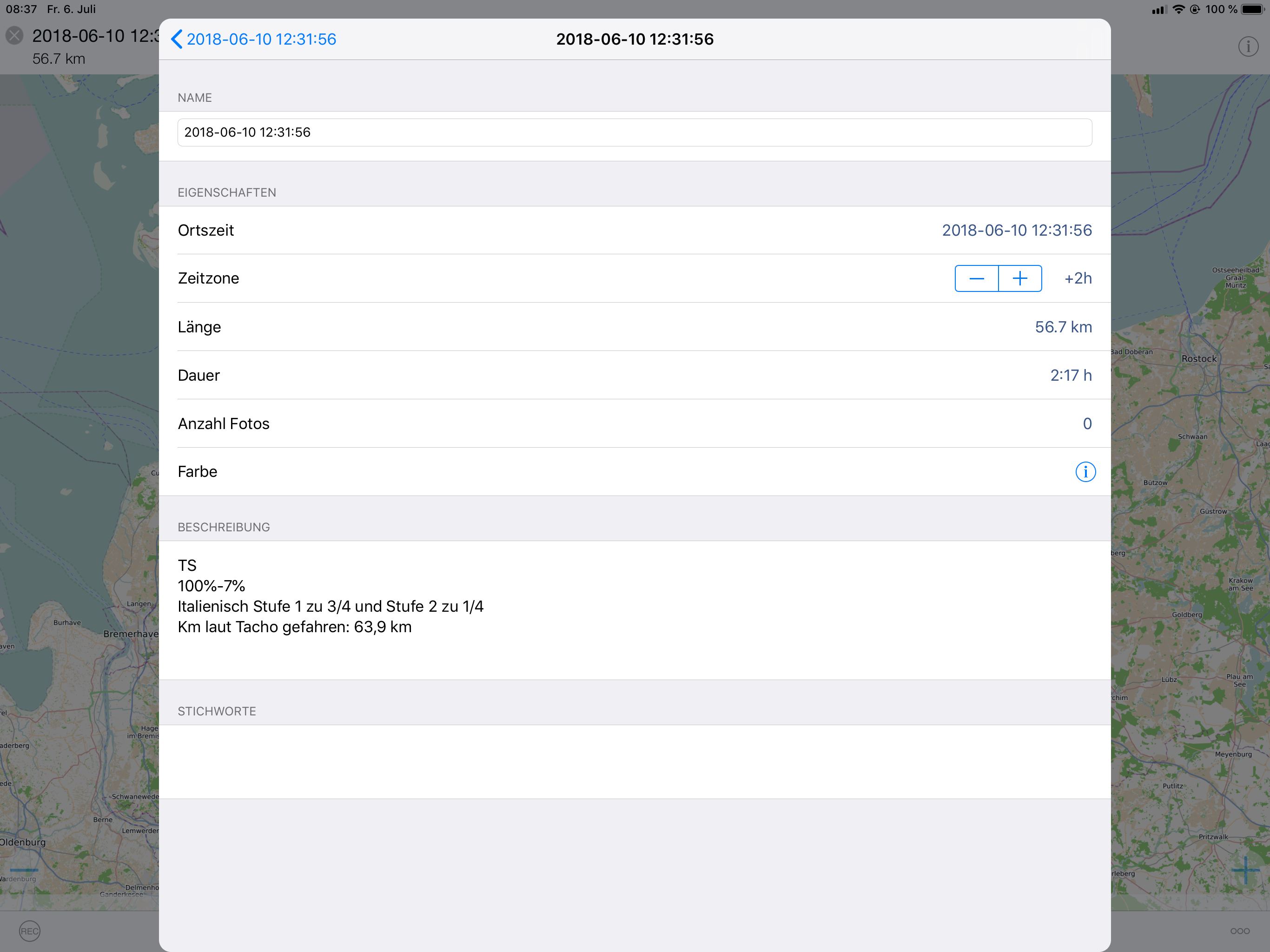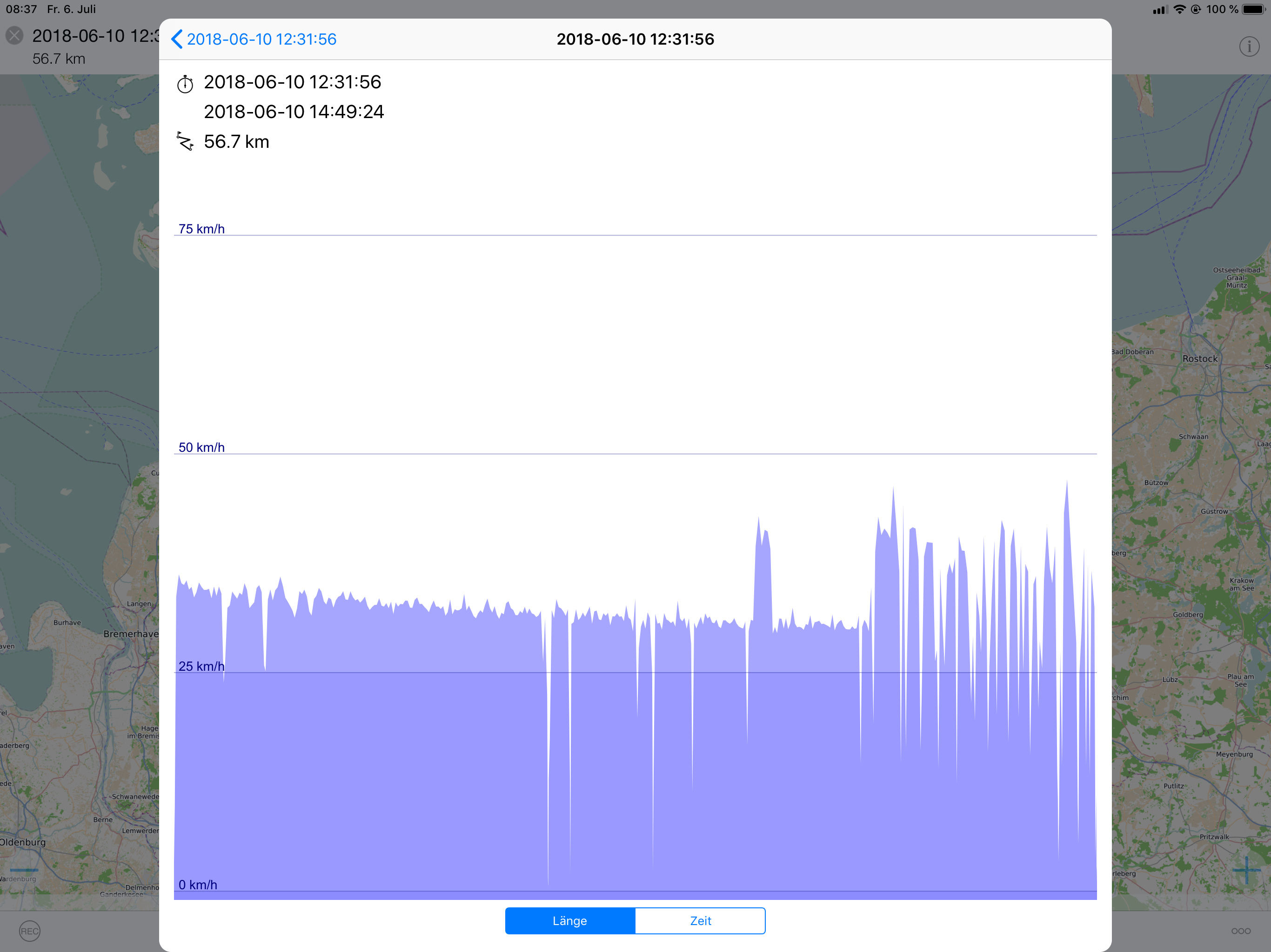 Geschwindigkeit laut Tacho der TS: