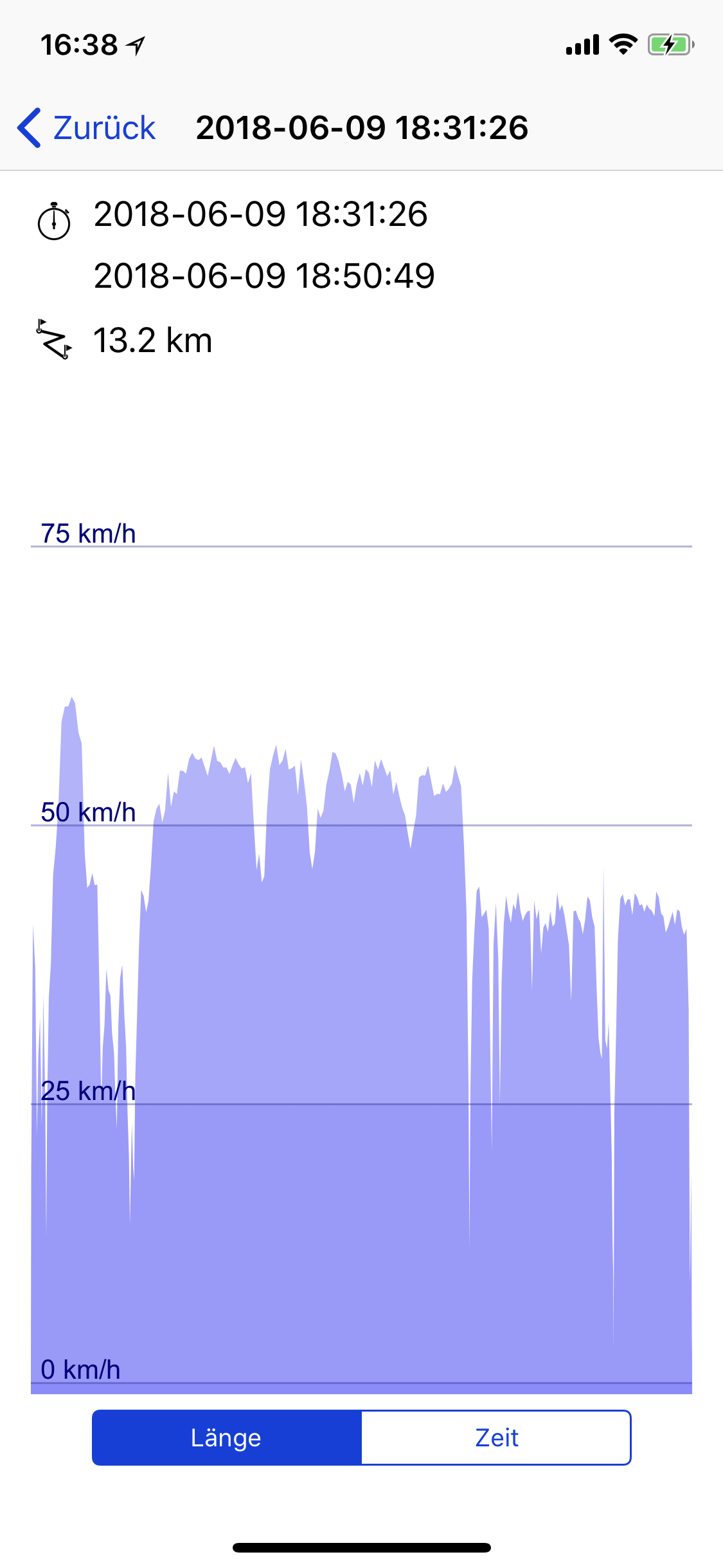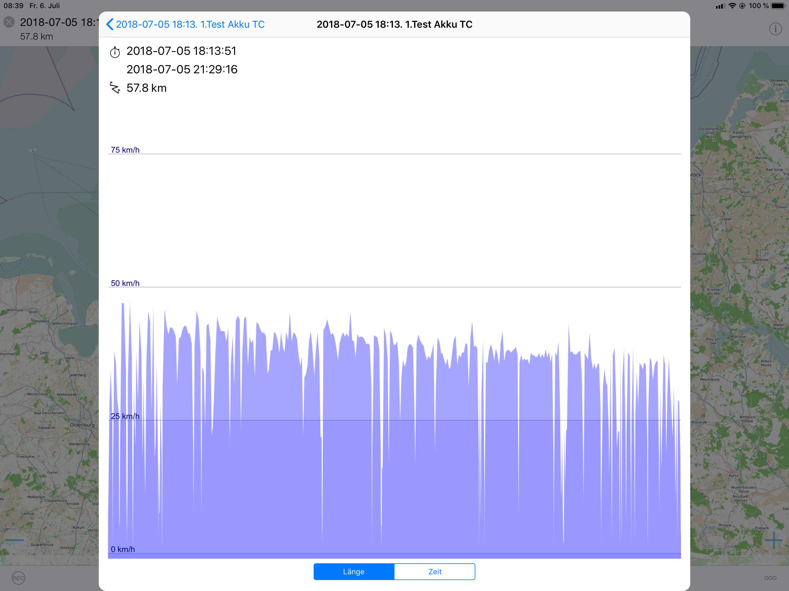habe ja auch laut Tacho geschrieben. In Wirklichkeit sind das so um die 55 km/h. Habe hier eine GPS Messung von einer umgedrosselten TS: Mit vollen Akku bin ich auf ca 68 km/h gekommen. Die TS kann man meiner Meinung nach permanent offen fahren, da wird keiner was von der Rennleitung sagen, wenn sie 55 reale km/h erreicht.