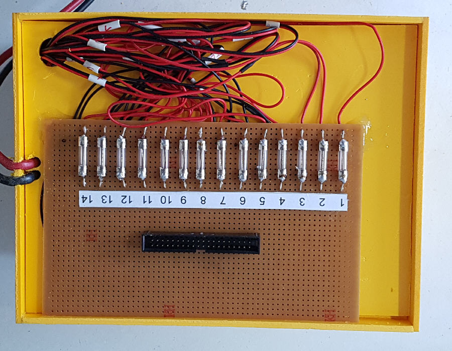 Die einzelnen Zellblocks wurden auf eine Steckerleiste herausgeführt und mit Schmelzsicherungen abgesichert.