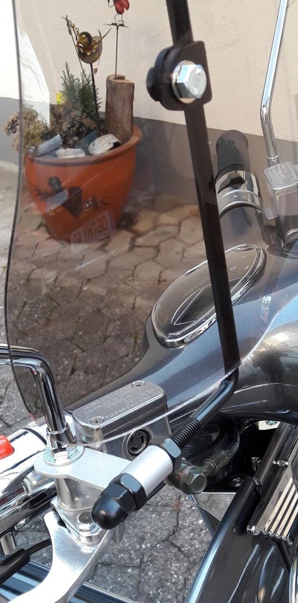 Bin jetzt einige Kilometer mit dem "verlängerten" Windshield gefahren und muss sagen, dass das einwandfrei hält und nichts vibriert. Allerdings musste ich die Muttern an der Halterung nach dem ersten Kilometer noch einmal etwas nachziehen, aber jetzt hält's.