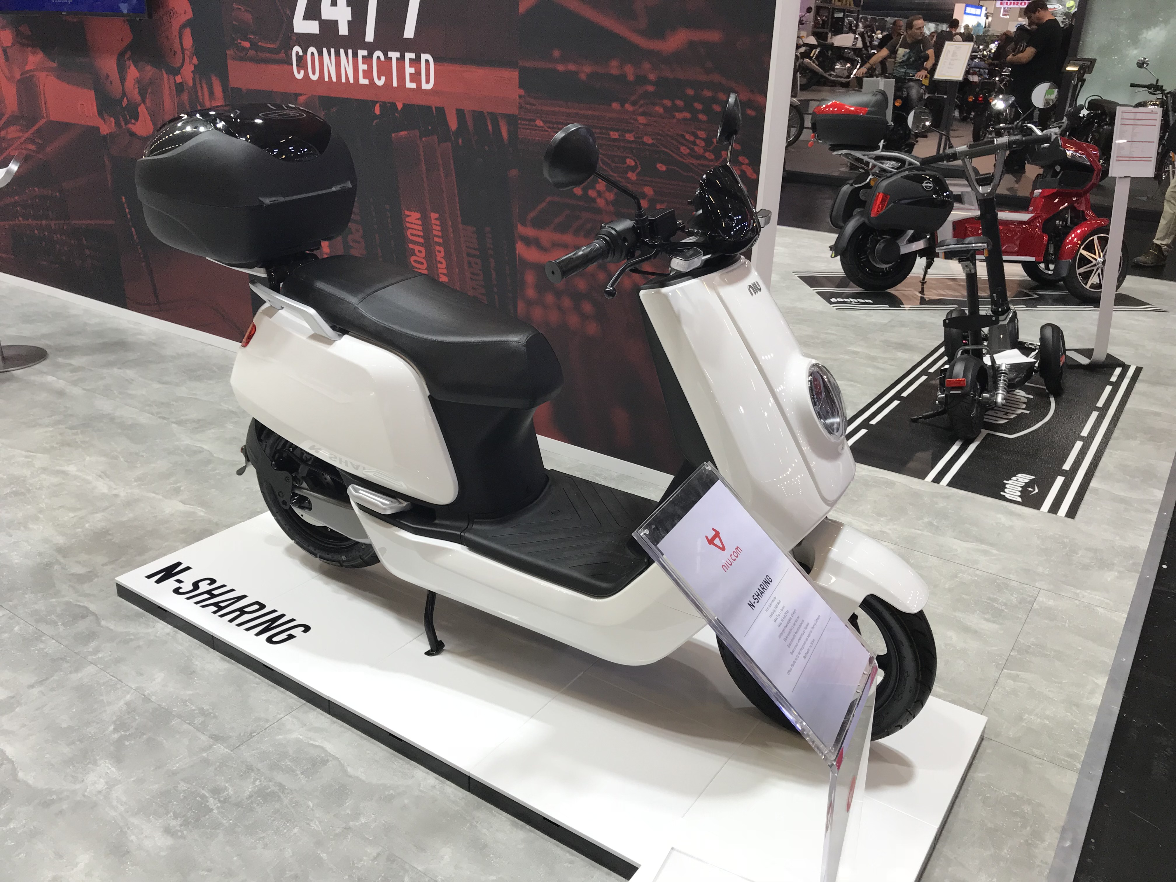 Die meisten Hersteller findet man in der Halle 7 wie NIU, Torrot, NITO, Citycoco, EMCO, SuperSoco mit den Motorrädern und den Rollern, Etropolis mit dem Escooter, Trinity und Kumpan. Der Stand von Zero war besonders klein und wurde von mir im ersten Anlauf übersehen. Schön, dass auch die italienische Edelschmiede Energica mit allen Modellen in dieser Halle vertreten war. Dort waren auch die Mobile von Doohan, die besonders für Rollstuhlfahrer oder solche die lieber mit drei Rädern fahren wollen, eine Alternative sein sollten.