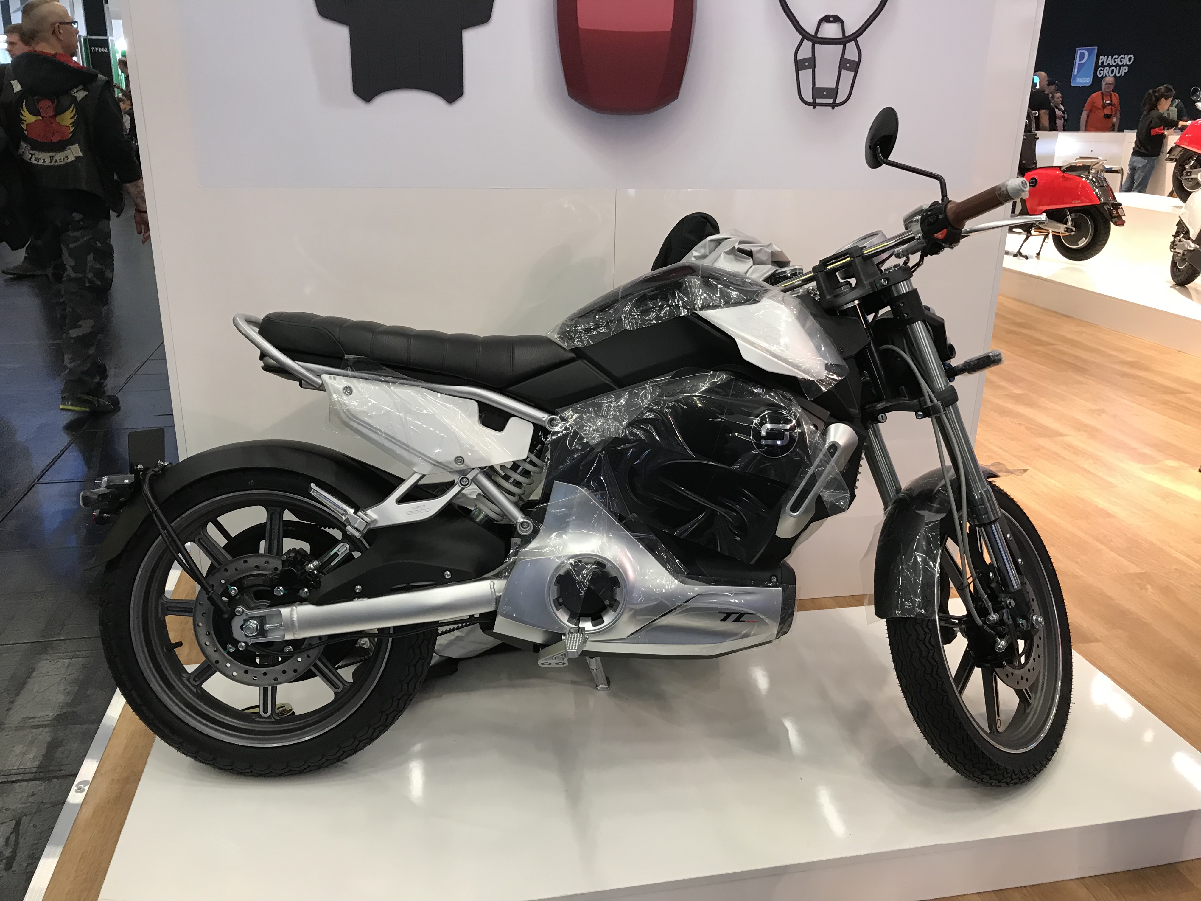 Vespa war zwar vertreten, der E-Vespa aber nicht. Er wird erst in einem Monat auf der EICMA in Mailand gezeigt. Da ist wohl etwas Nationalstolz Ursache der Entwicklung. Der Roller ist nämlich vorführfähig.
