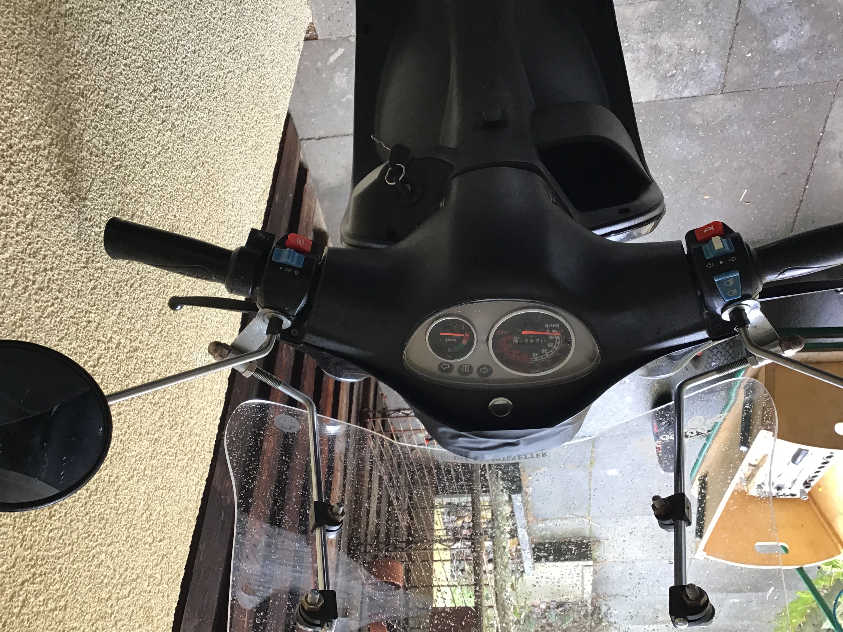 Da genug lose und offene Kabel vorhanden sind, war das recht mutig, aber laut Aussage des VK ist der Roller so gefahren.