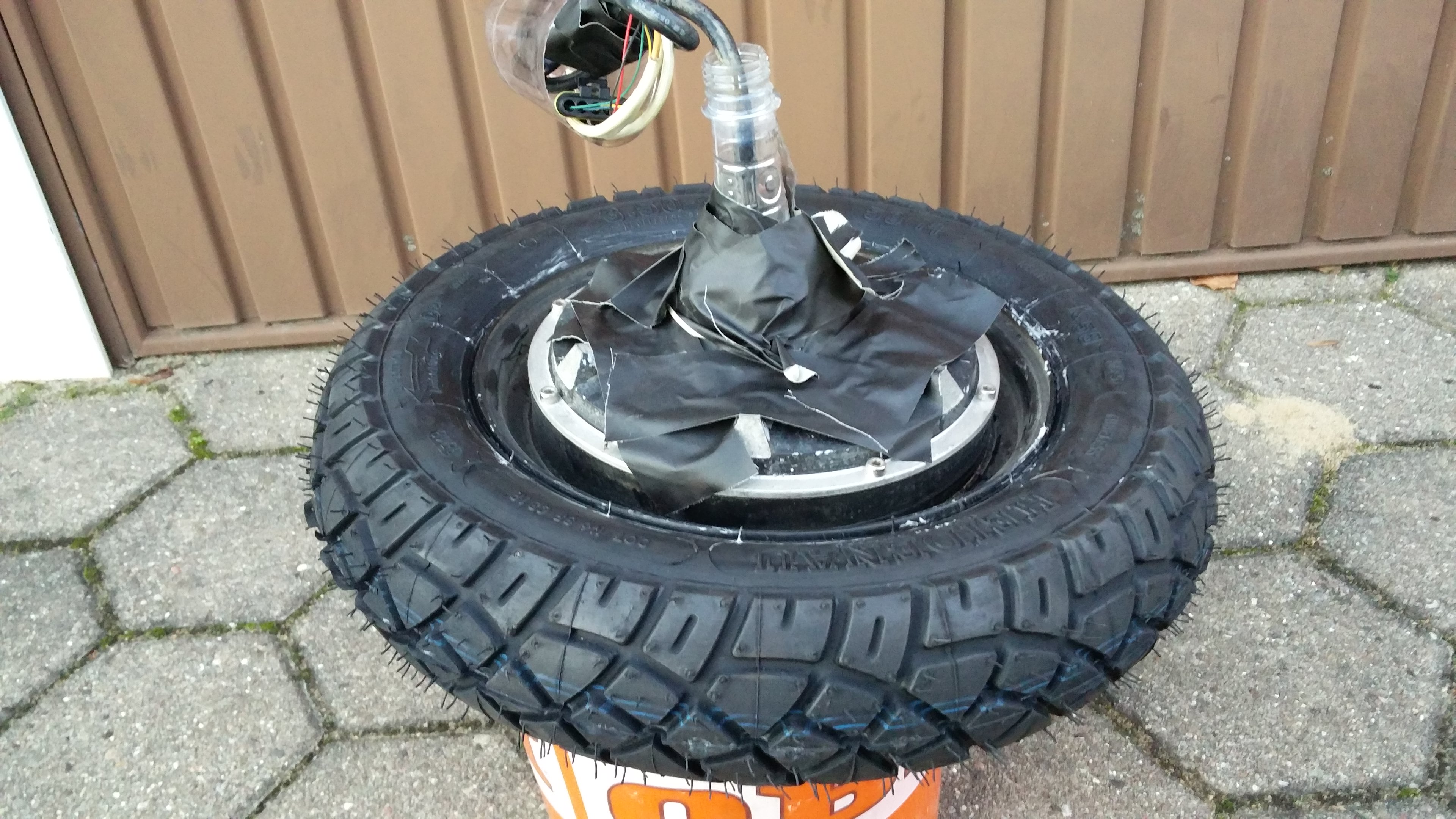 Das Hinterrad habe ich eigenhändig demontiert, und mit meinem anderen eRoller dort hingebracht.