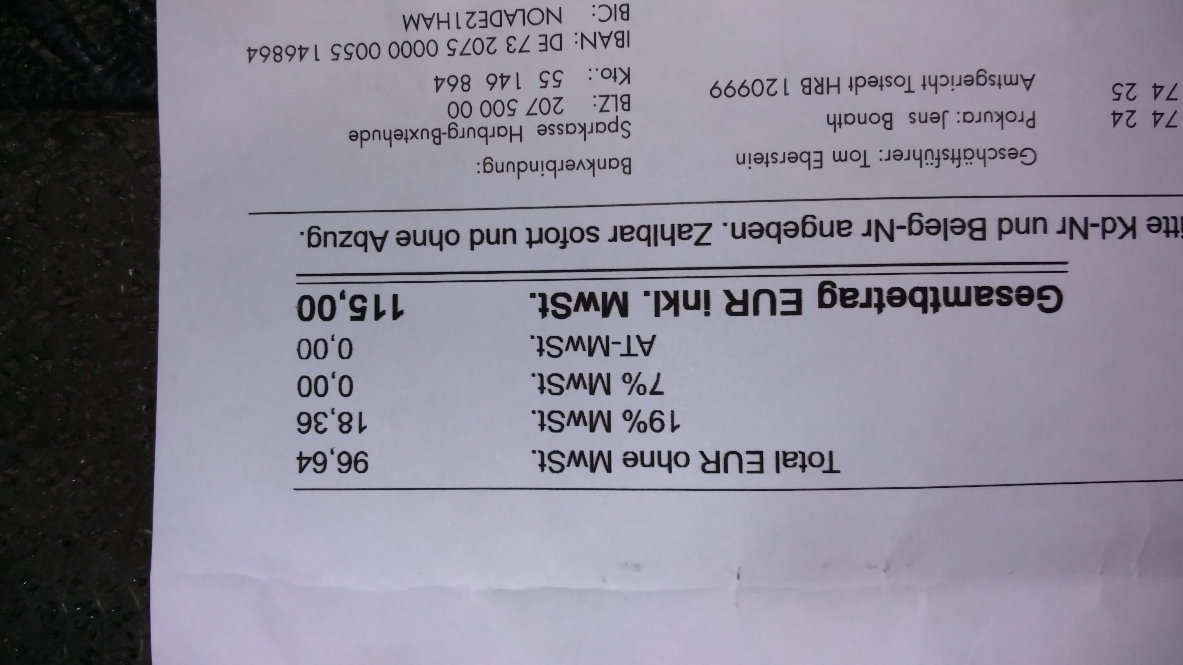 Ich hätte heute einen Termin in 21614 Buxtehude, Westende 10 gehabt, bin aber zeitlich nicht dazu gekommen.