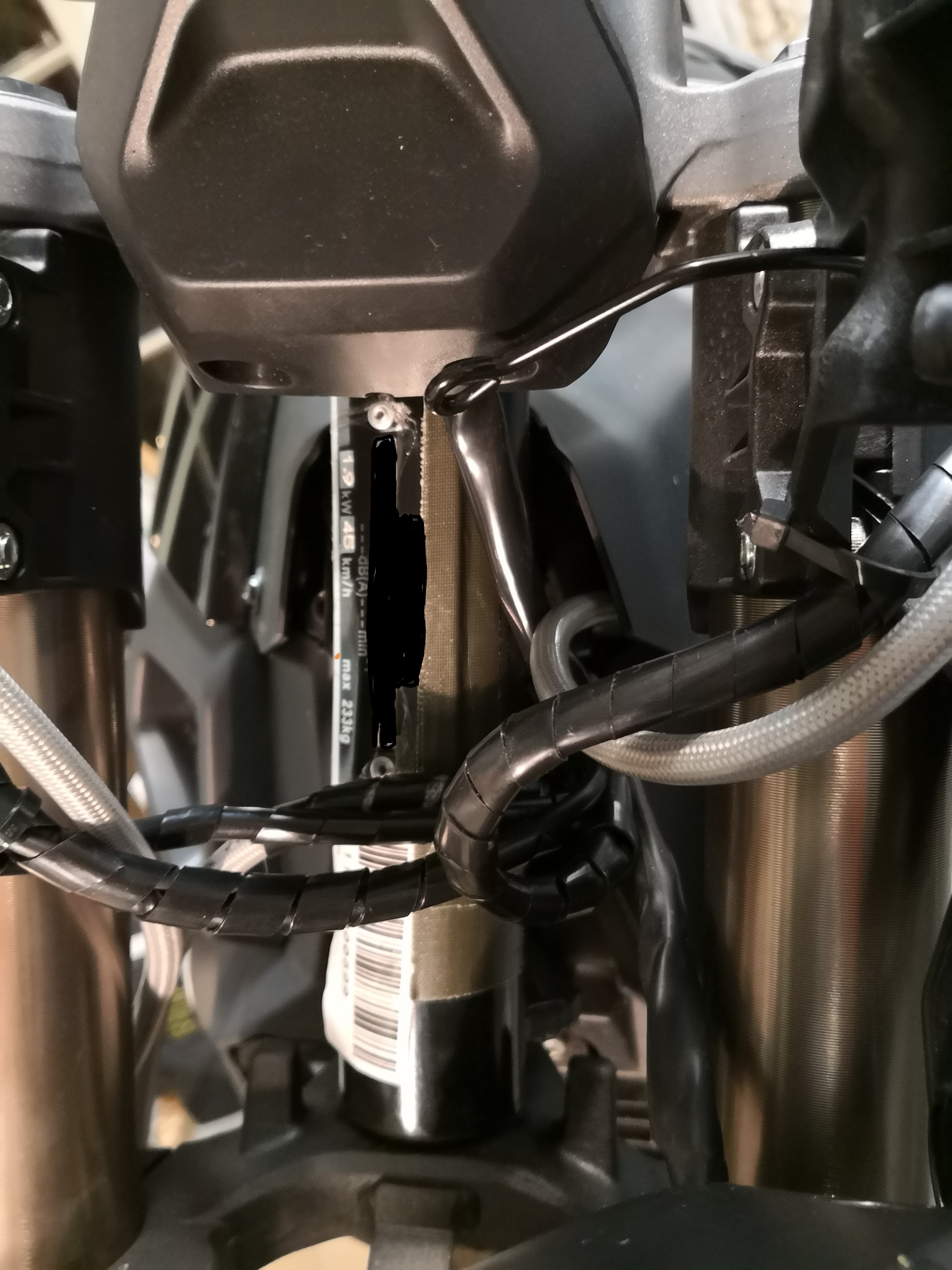 Danke für den Hinweis! Ich habe bei mir mal nachgesehen und die Kabel schleifen auch an dem Typenkennzeichen (450 km gelaufen). Würde es nicht mehr bringen, die Kante von dem Typenschild mit etwas weichen überzukleben? Ein Kabelschutzband würde sich doch erneut wieder an der Kante abschleifen. Auf dem ersten Bild sieht man auch, dass der Kabelstrang im Schlauch, der oben durch die Plastikmulde führt, an der Kante der Mulde schleift.