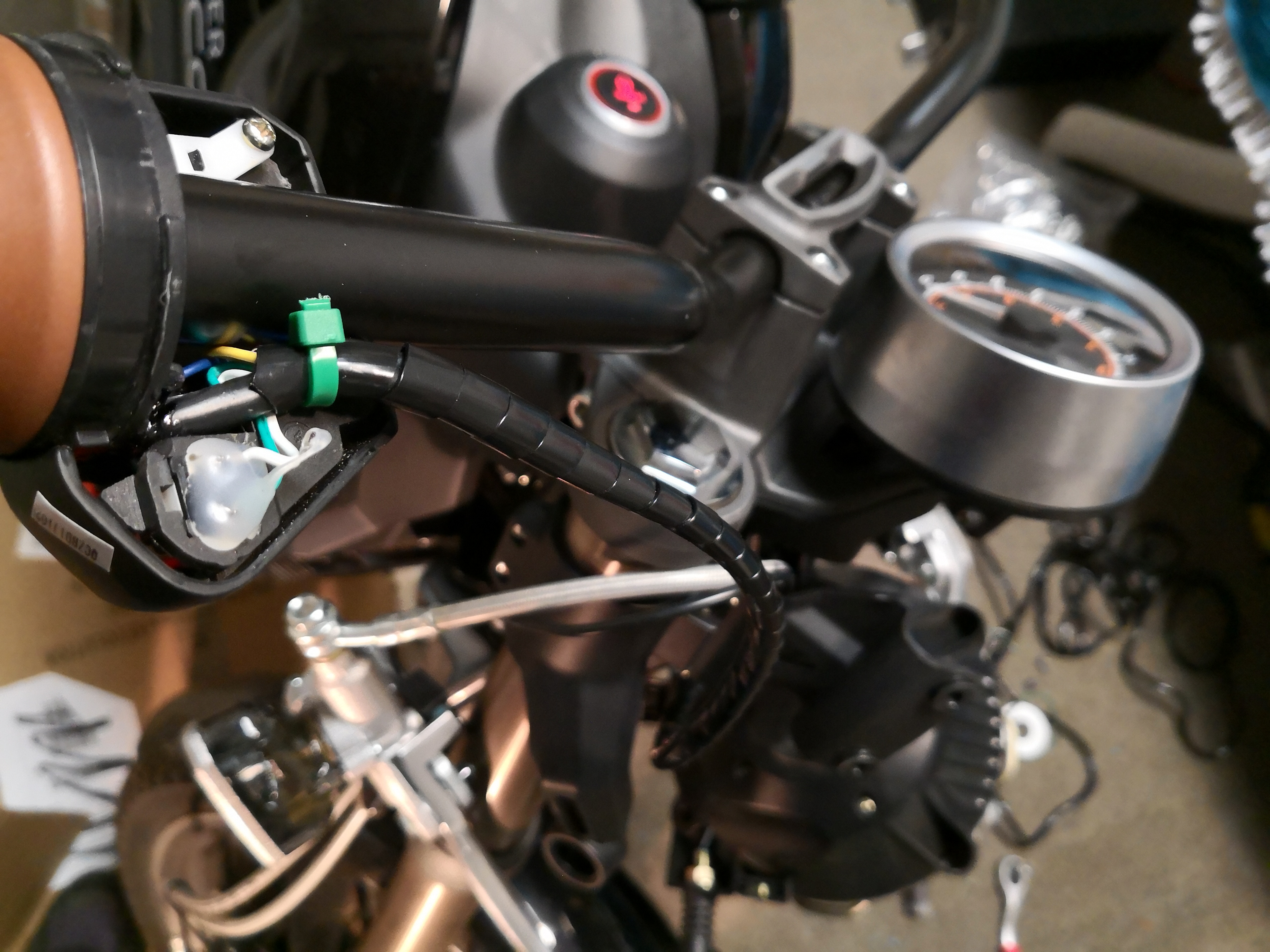 Bitte alle die Kabel hinter dem Scheinwerfer kontrollieren die zum Gasgriff / Bedieneunheit gehen. :!: