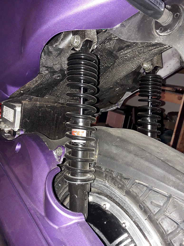 die habe ich ersetzt durch nachbauten für einen yamaha yp 125 von yss(YSS Fahrwerk Satz Federbeine TD220-340P-03-X Stoßdämpfer).