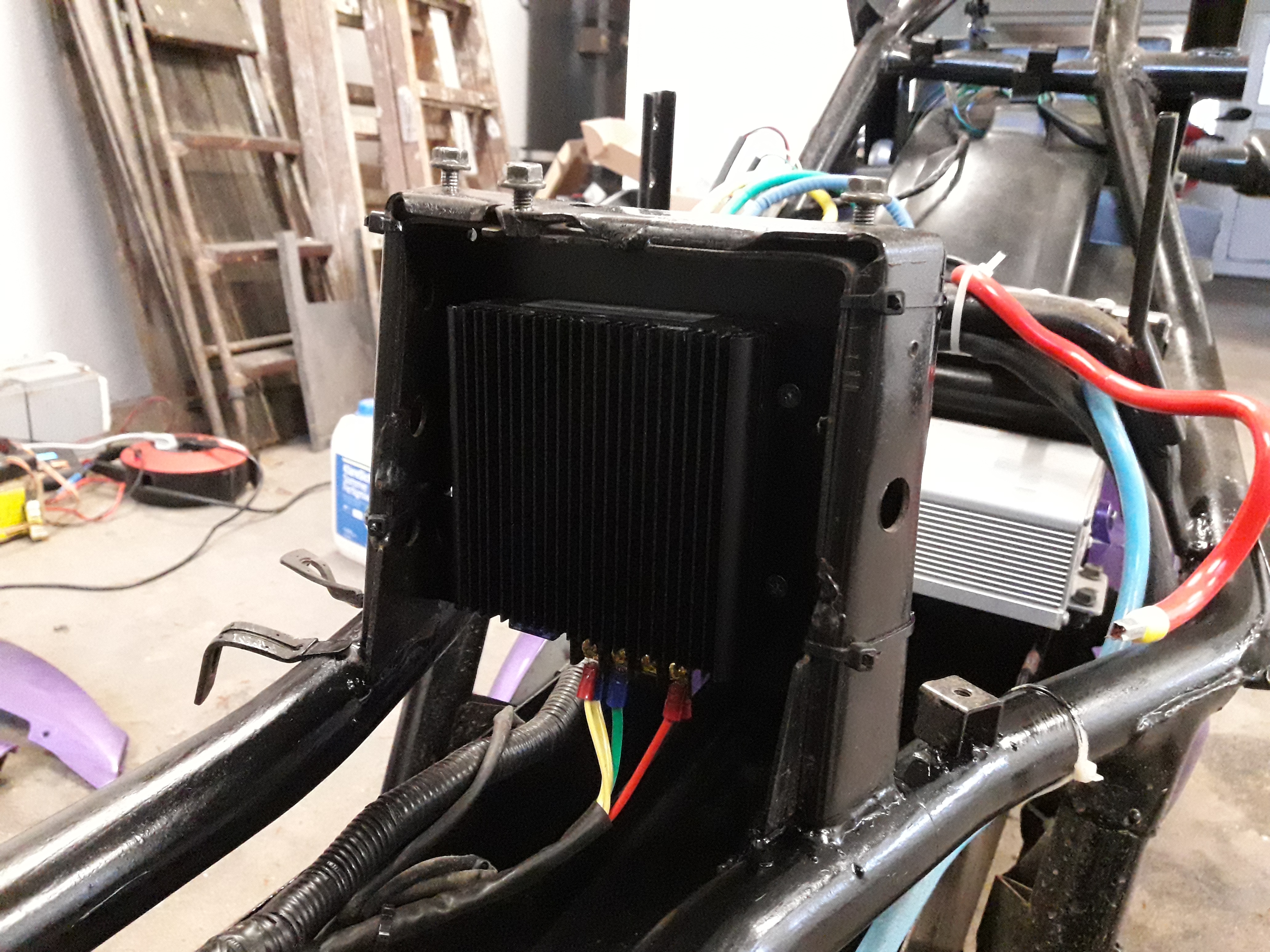 neuer 12v regler(alte war defekt) blechplatte am sitzbankbügel,neu verdrahtet,fertig