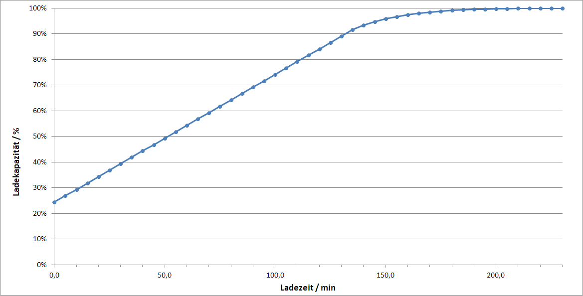 Die Ladevorgänge habe ich mit einer FritzDect 210 Funksteckdose überwacht und in 5 Minuten-Intervallen die Leistung protokollieren lassen.