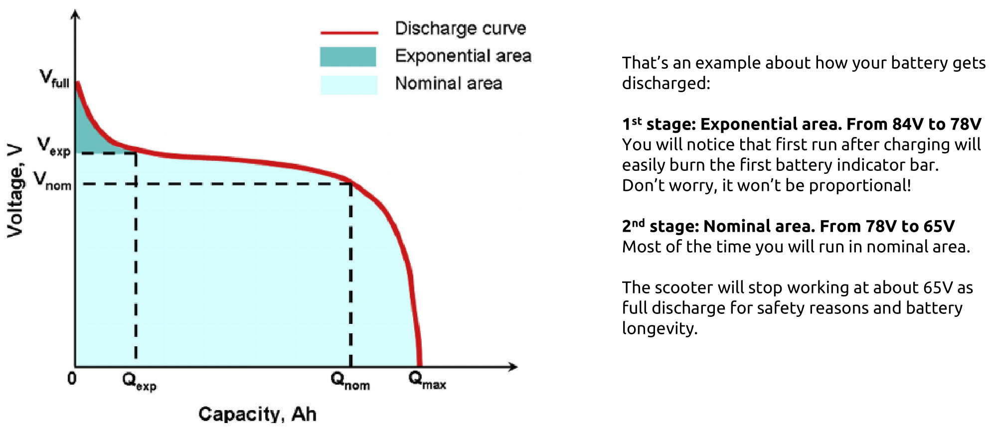 Als Orientierungswert für die gewonnene Reichweite je nach Ladezeit lässt sich abschätzen, dass während der 2 kW - Plateauphase am Anfang etwa 330 Wh je 10 min Ladezeit gewonnen werden. Bei einem Verbrauch von ca. 50 Wh/km gewinnt man damit etwa 6,5 km Fahrstrecke. Damit kann man ziemlich gut ausrechnen, wie lange man einen fast leeren Akku im Notfall an einer Ladestation nachladen muss, um es nachhause zu schaffen.