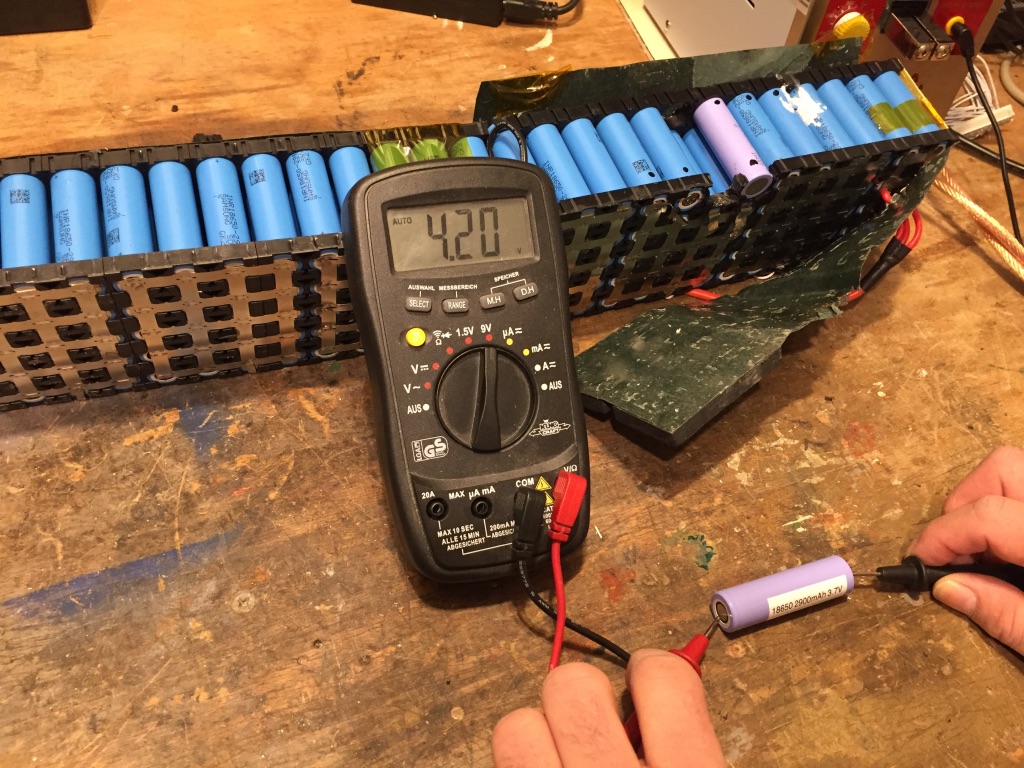 Ich habe meinen 48V 30AH Akku für meinen Revoluzzer im Jahr 2017 gekauft und als ich ihn jetzt wieder aktivieren wollte (also nach ca. 1 x Laden/Monat im Winter während der "Ruhephase des Rollers) zeigte er volle Ladung - aber nach kurzer Zeit (ca. 1 km fahrt) war er wieder leer. Hab den Akku dann auseinander gebaut und gesehen, dass 2 Zellen am äußeren Rand des Akkupacks Ausblühenden zeigte und auch an den Lötfahnen Korrosion zu sehen war. Ich hab dann den Akku geladen, damit alle Zellen wieder die ca. 4,1 Volt Spannung haben und dann die beiden defekten Akkus aus dem Pack herausgenommen und 2 neue und auch auf 4,1V geladene Zellen (gleicher Hersteller wie die anderen Akkus - Samsung 18650 29E) eingebaut. Beim Verbinden mit den Restpack der noch ganzen Akkus wurde der Metallverbinder der vorher auch verwendet wurde sofort sehr heiß und die neue Zelle erwärmte sich sofort. Ich dachte dann erst an einen Kurzschluss oder eine falsche Polung - aber mehrer meiner Elektrikerkollegen bestätigten mir, dass ich soweit alles richtig gemacht habe. Trotzdem erhitzt sich die neu eingebaute Zelle sofort, wenn sie in den Zellenpack eingebunden wird. Die zweite Zelle habe ich deshalb gar nicht mehr mit angebunden.