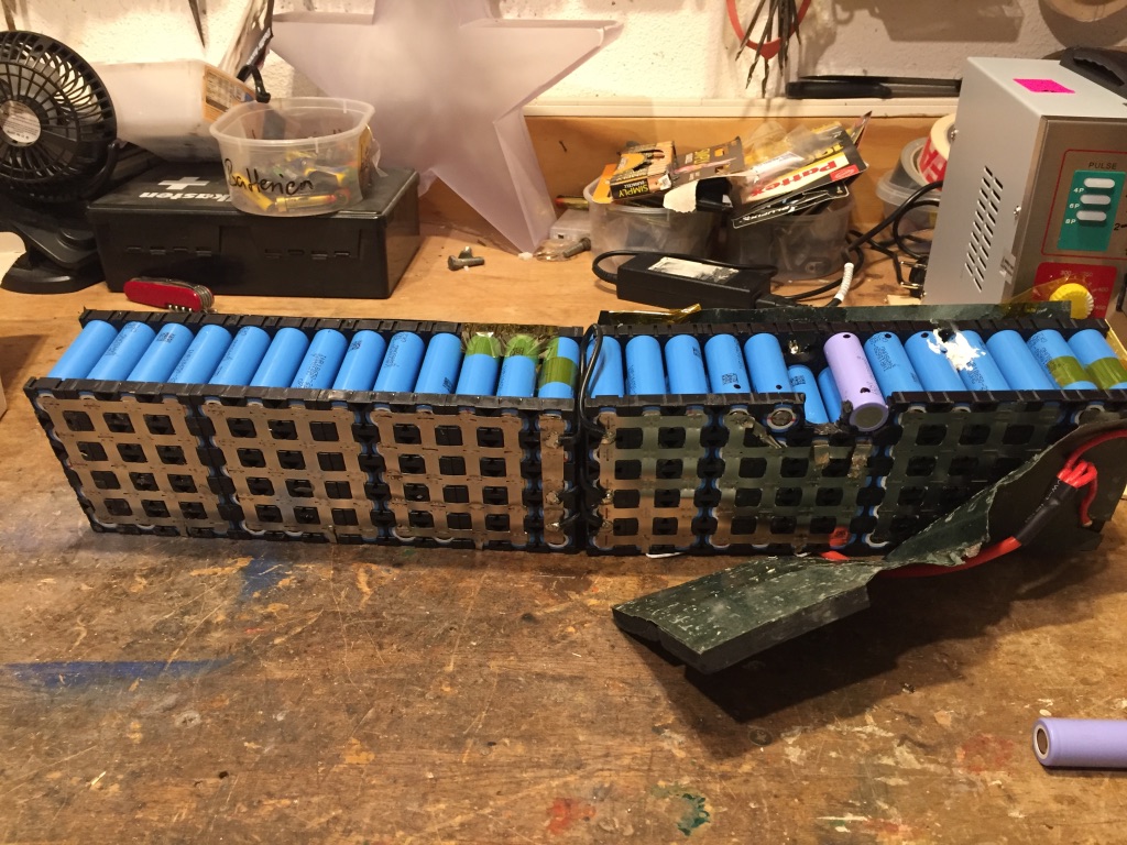 so wie es auf den Fotos zu erkennen ist, sind deine Zellen 13S und 10P zusammengeschaltet. Bei der Parallelschaltung sind 2 Reihen a' 5 verbunden. Bei den verwendeten Samsung 18650 29E Zellen kommt eine Kapazität von 29 Ah für deinen Akku zu Stande.