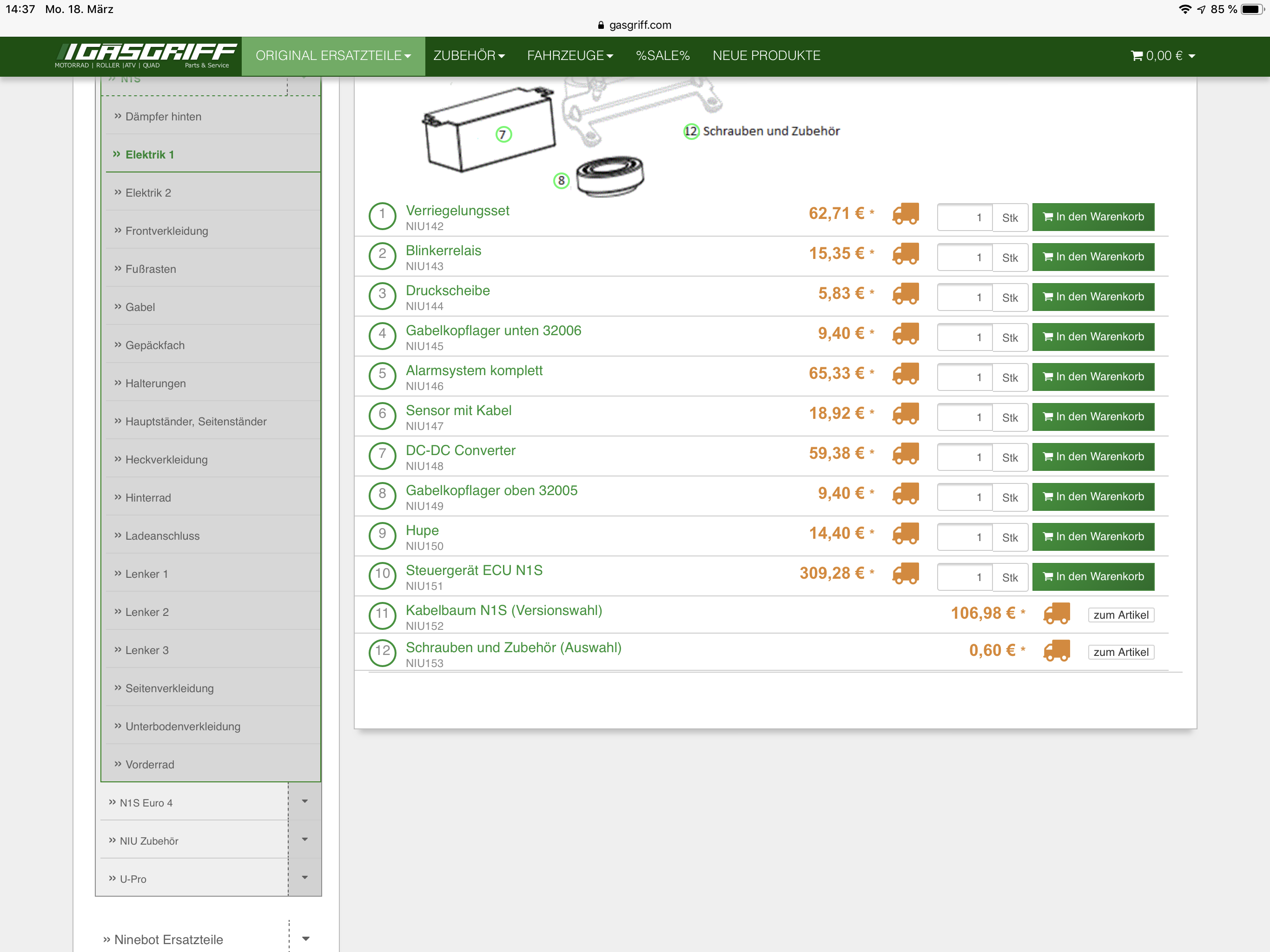 Hier aus der Ersatzteileliste die einzelnen Bauteile