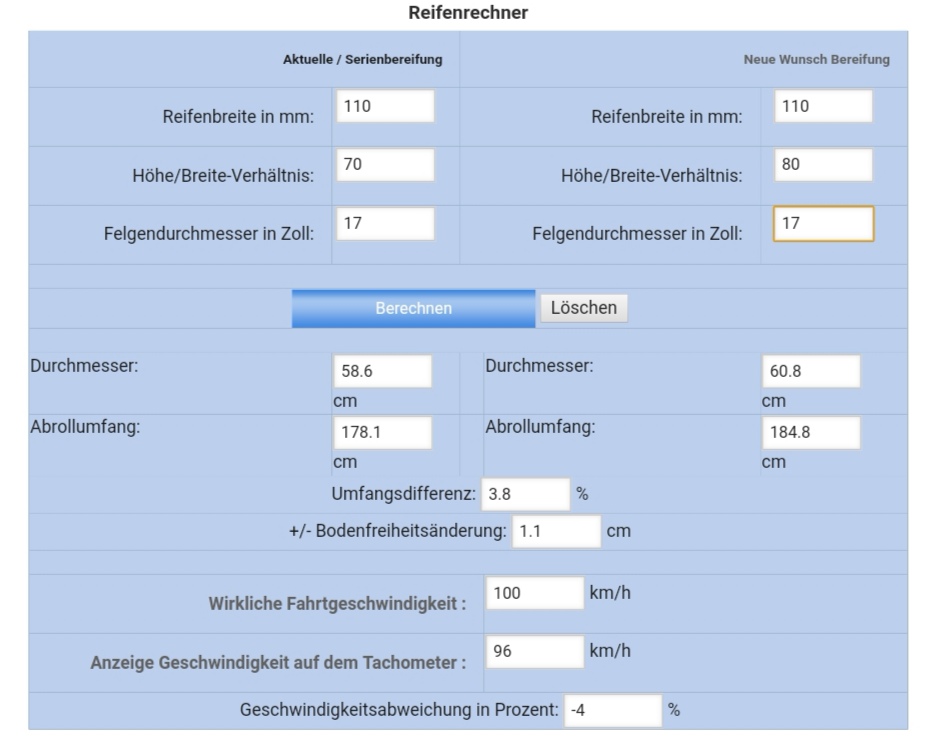 Zieht man einen Reifen 100/90-17 auf wäre das Moped um ca. 3 km/h schneller, die Tachoabweichung halbiert.