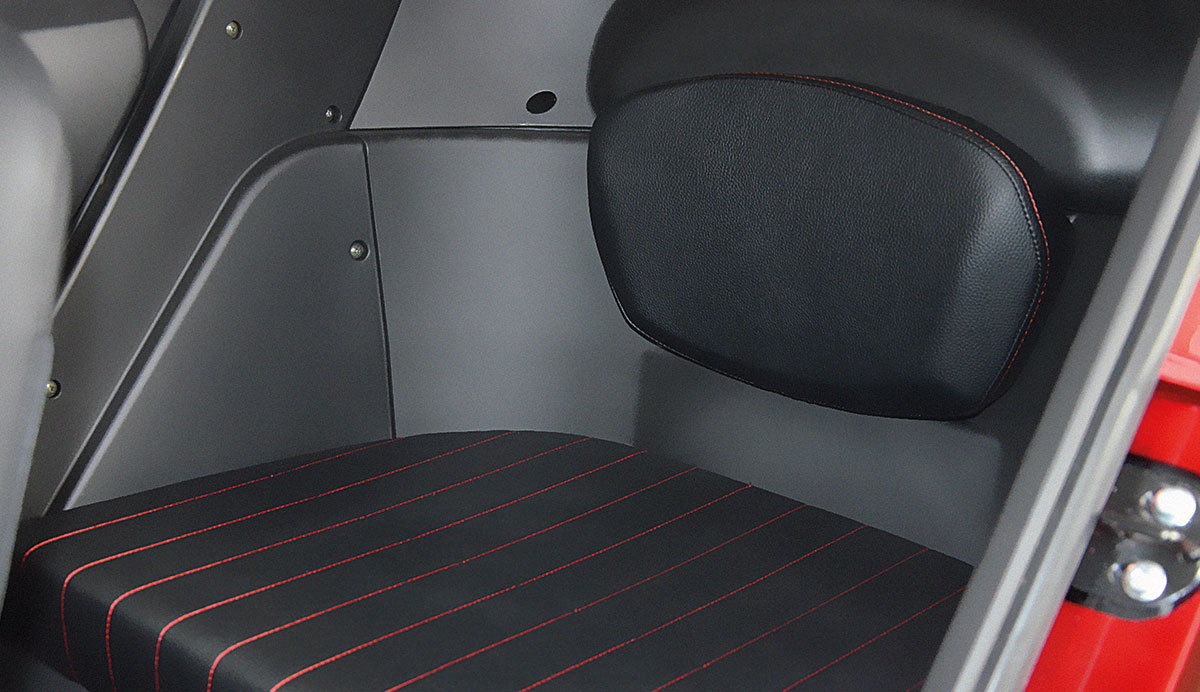 Schade nur, das hinten so wenig Platz ist, das wird schon zu zweit kuschlig. Aber zusätzlich noch Hund oder Gepäck geht echt nicht. Ich bin mir auch nicht sicher, wie ich Ladung und Hund hinten sichern könnte. Sicherheitsgurte und Befestigungen gibt es zumindestens bei der Econelo- Variante nicht, da muss man selber was basteln.
